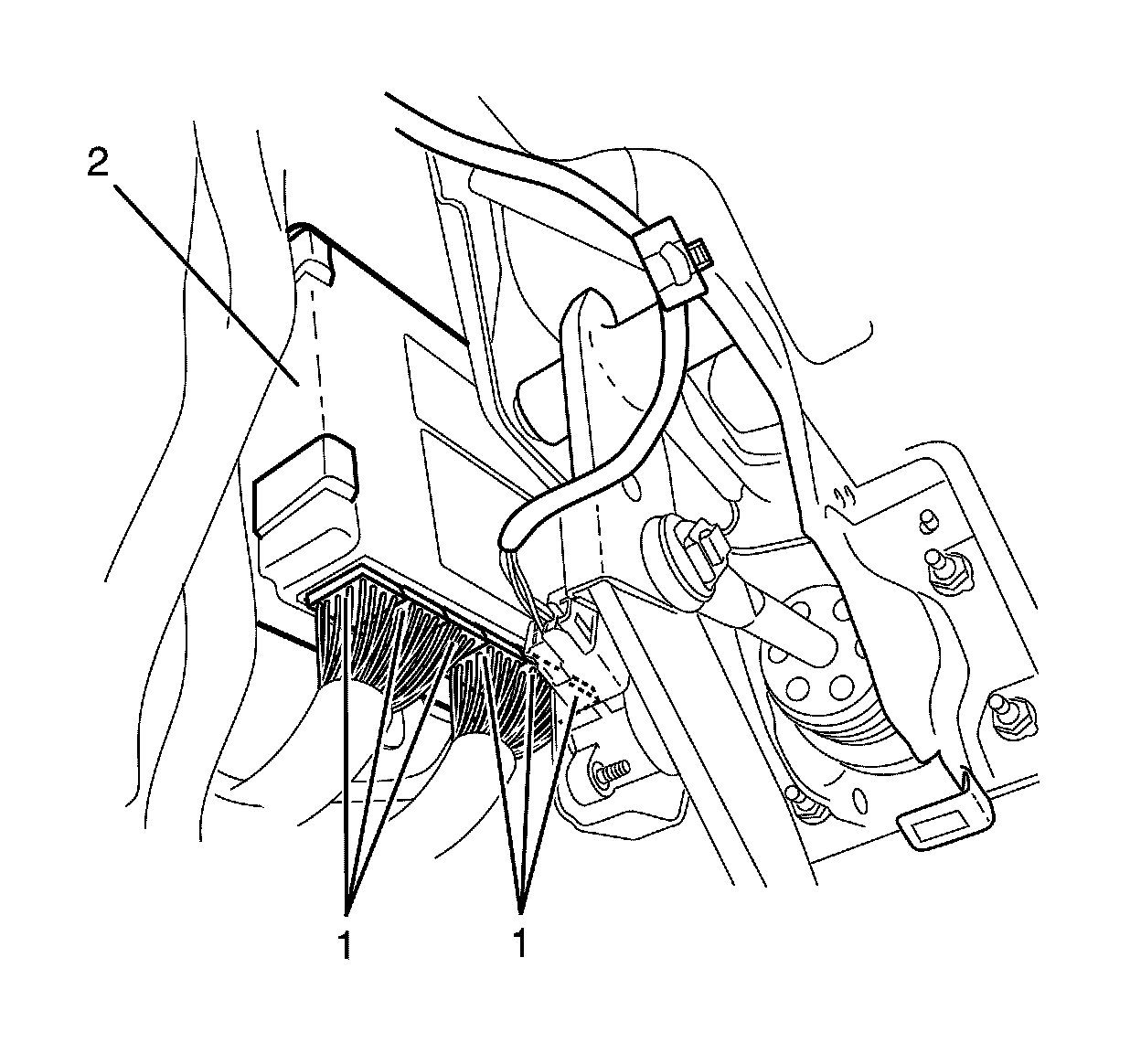 3. Remove the left floor air outlet duct. Refer to Floor Air Outlet Duct Replacement - Left Side (LHD) Floor Air Outlet Duct Replacement - Left Side (LHD).