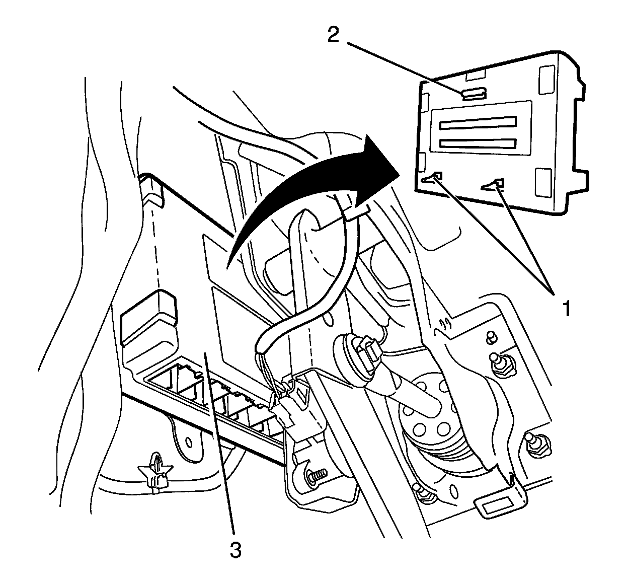 5. Remove the BCM and the bracket assembly (3).