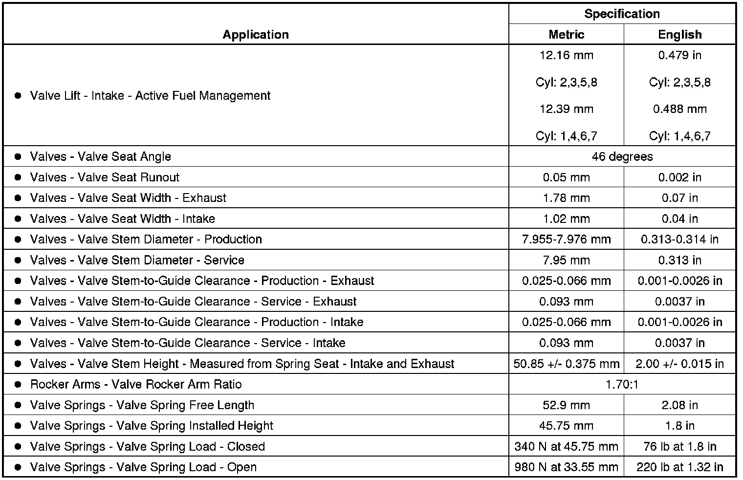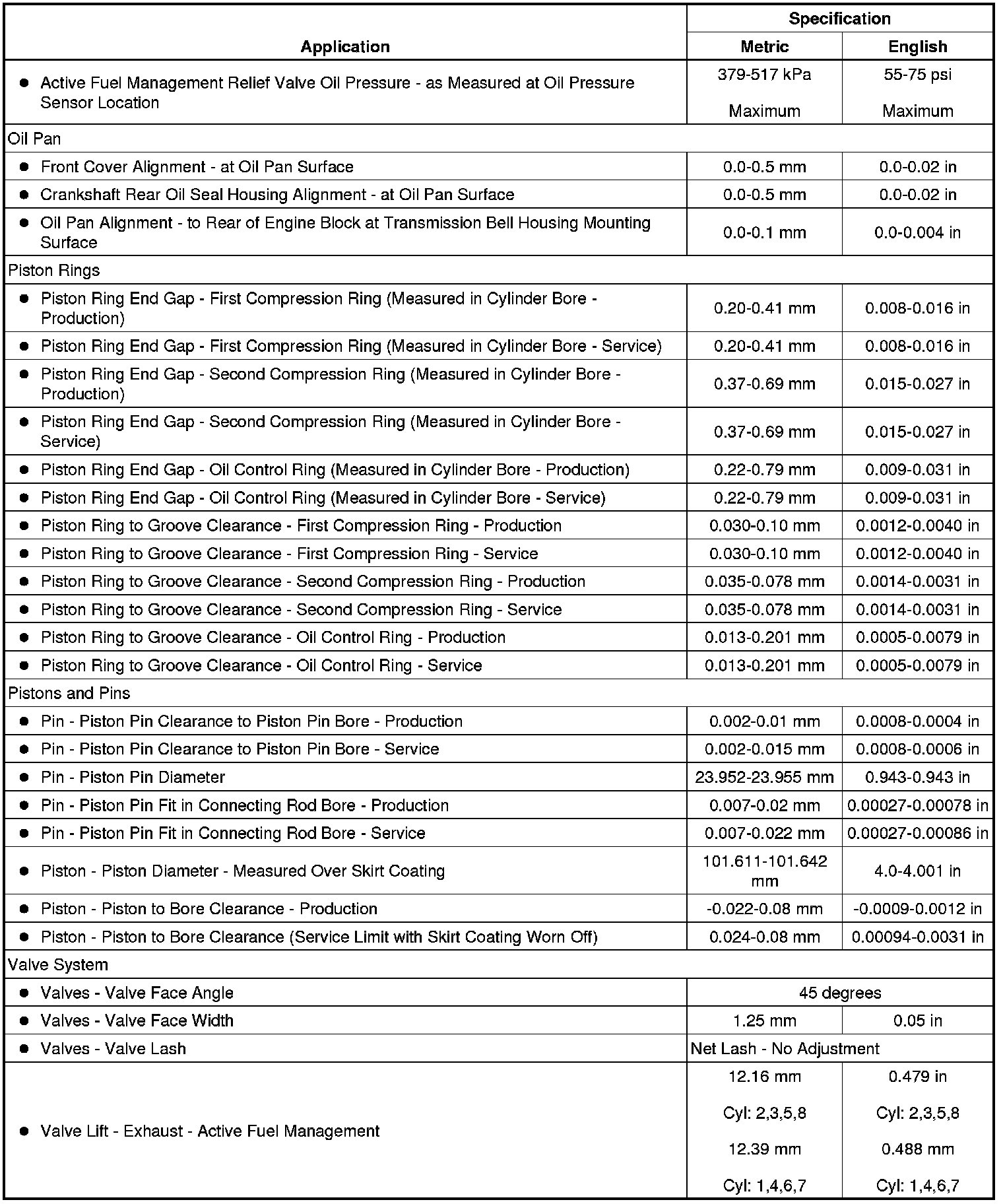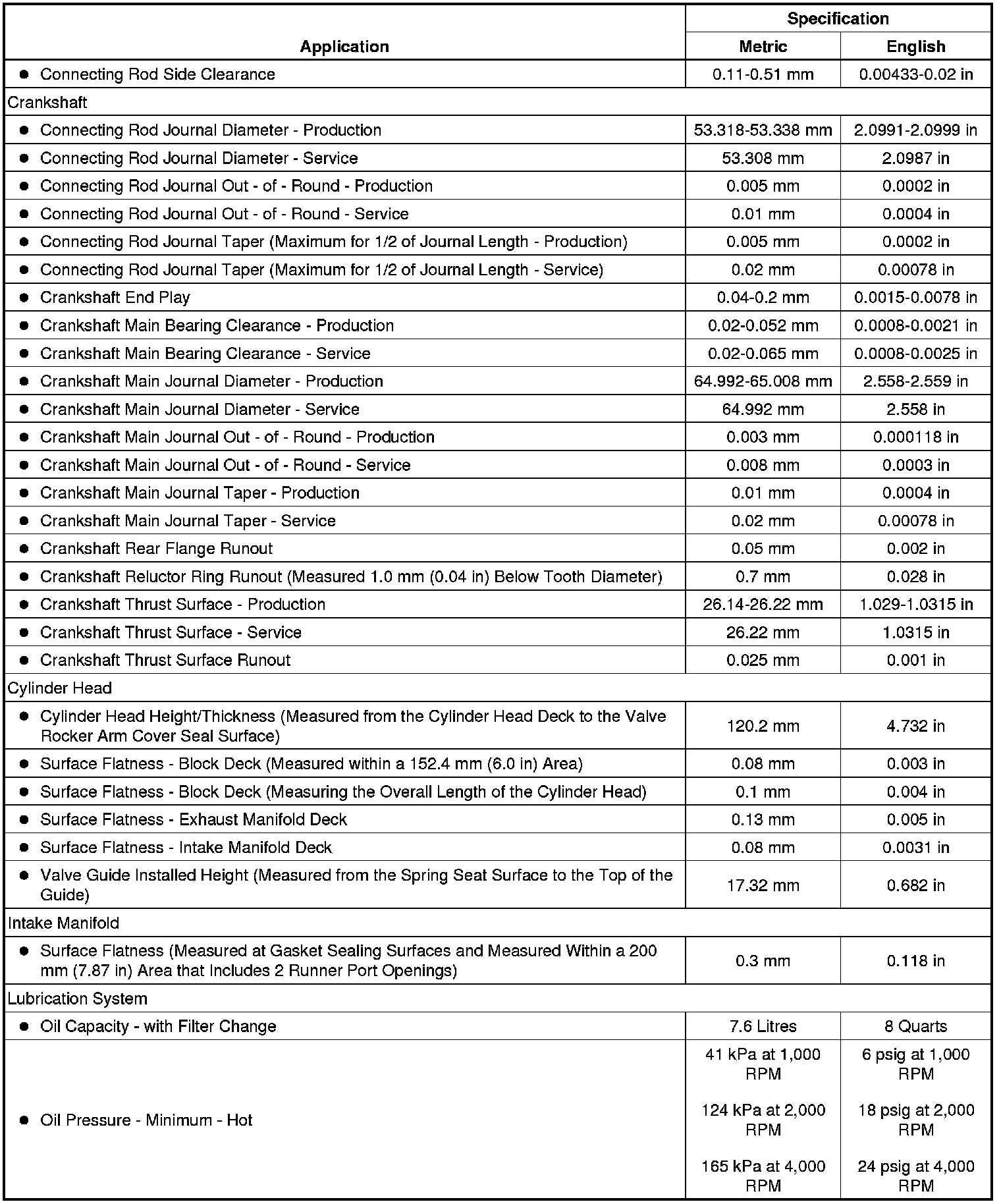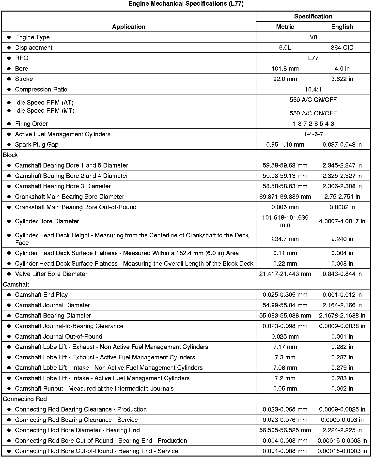 Engine Mechanical Specifications (L77)