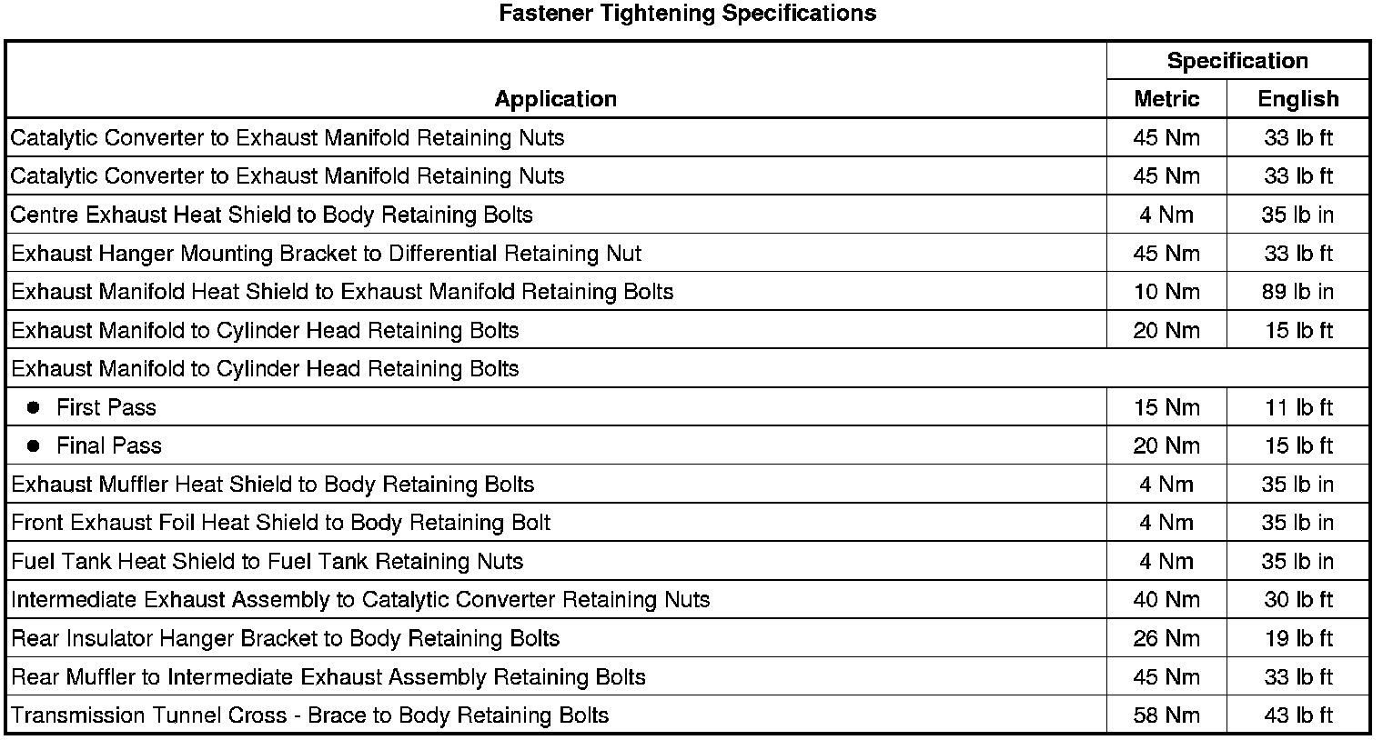 Fastener Tightening Specifications