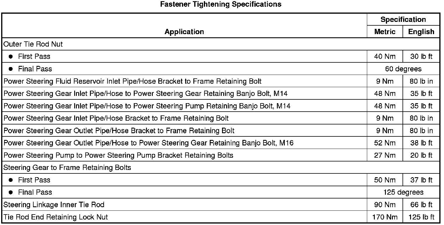 Fastener Tightening Specifications