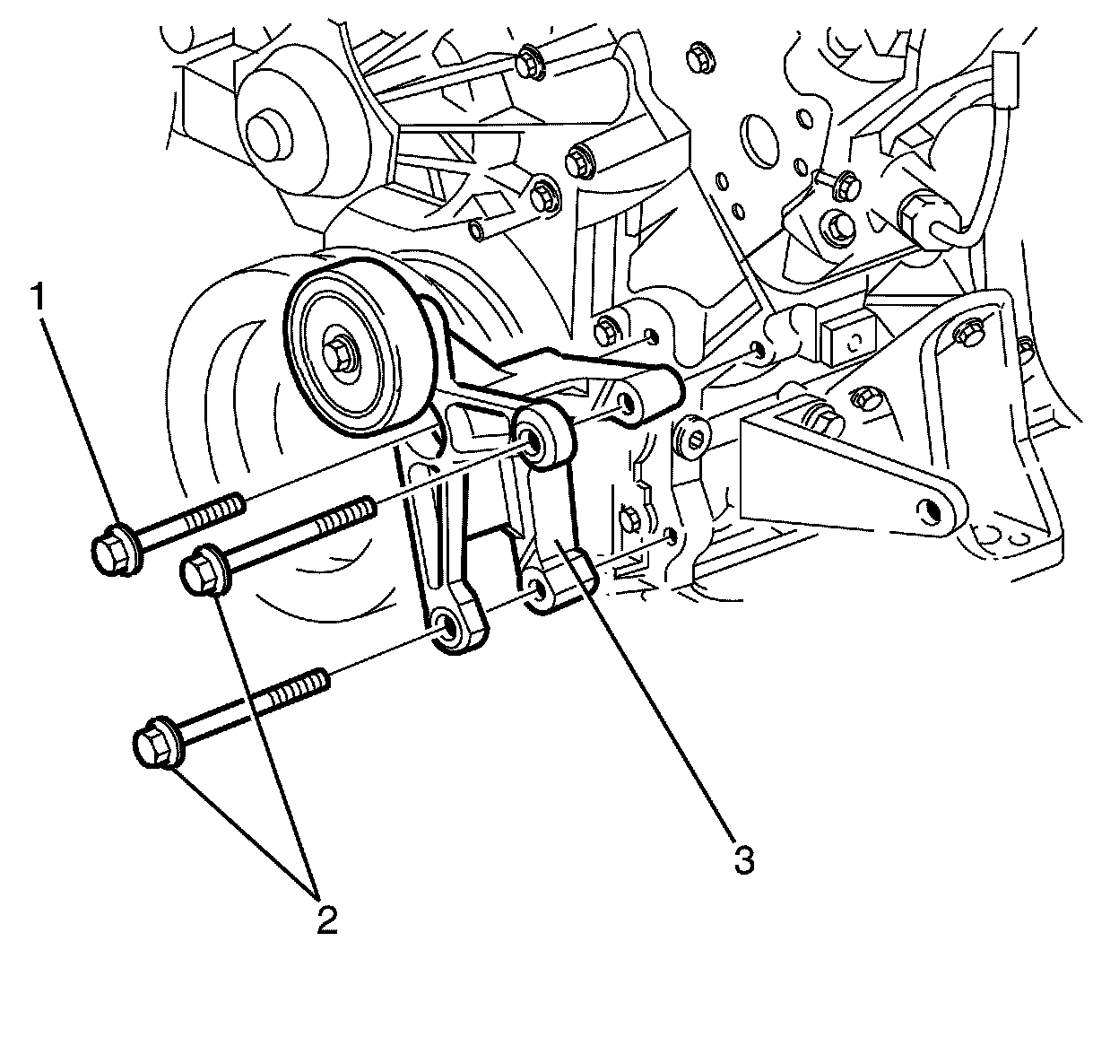 3. Remove the alternator bracket to engine block mounting bolt (1).