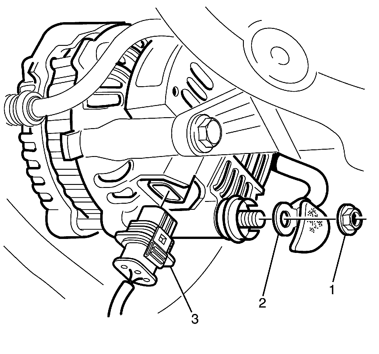 11. Remove the electrical connector (3) from the generator.