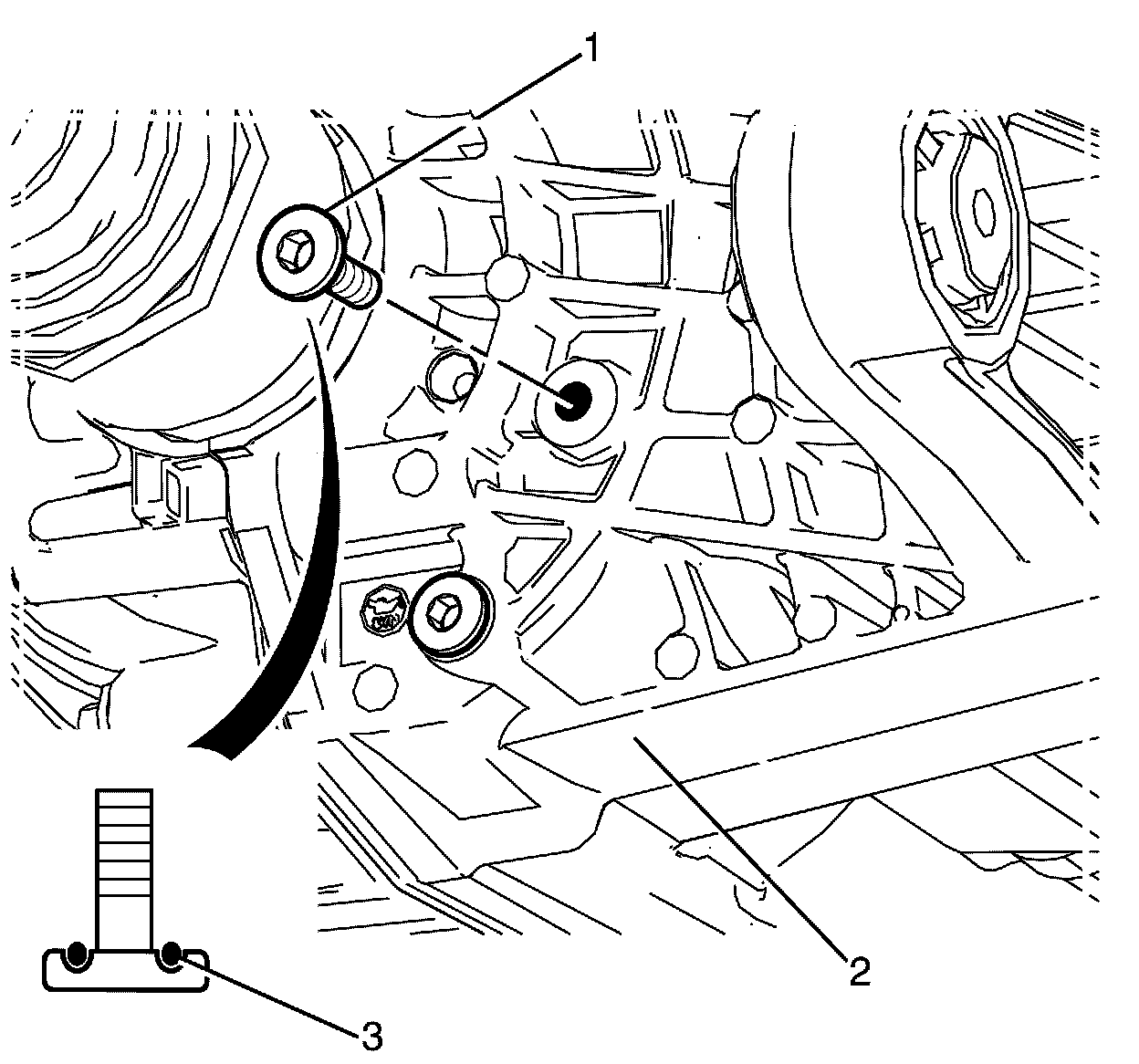 6. Install the differential fill plug (1) and O-ring (3) to the differential (2).