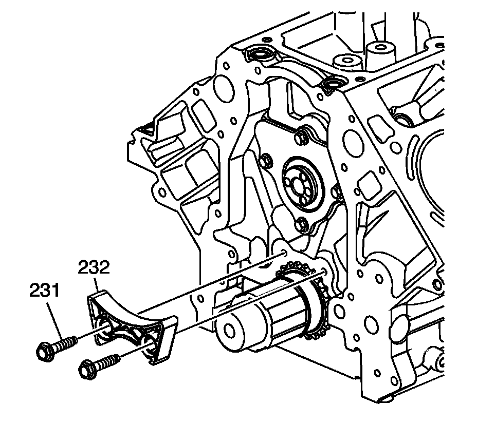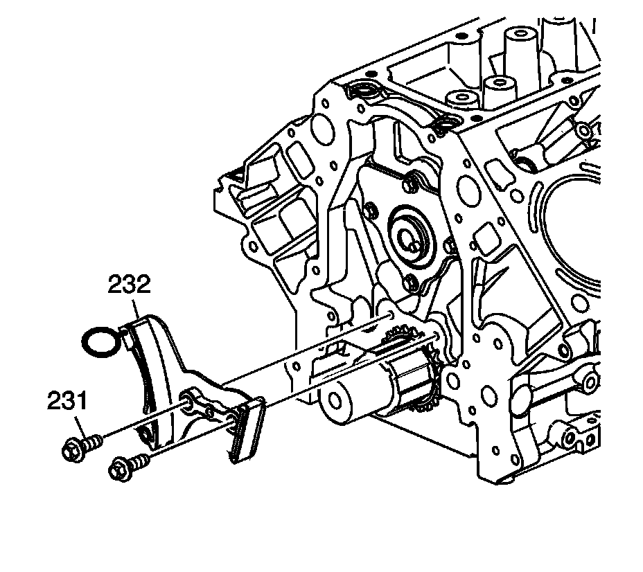 7. Install the timing chain tensioner (232) and bolts (231) and tighten to 25 Nm (18 lb ft) (LS9 only).