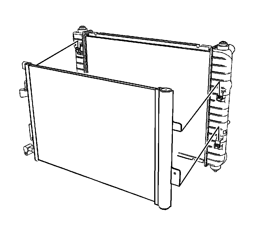 2. Remove the upper radiator support. Refer to Radiator Support Replacement (Radiator Support Replacement).
