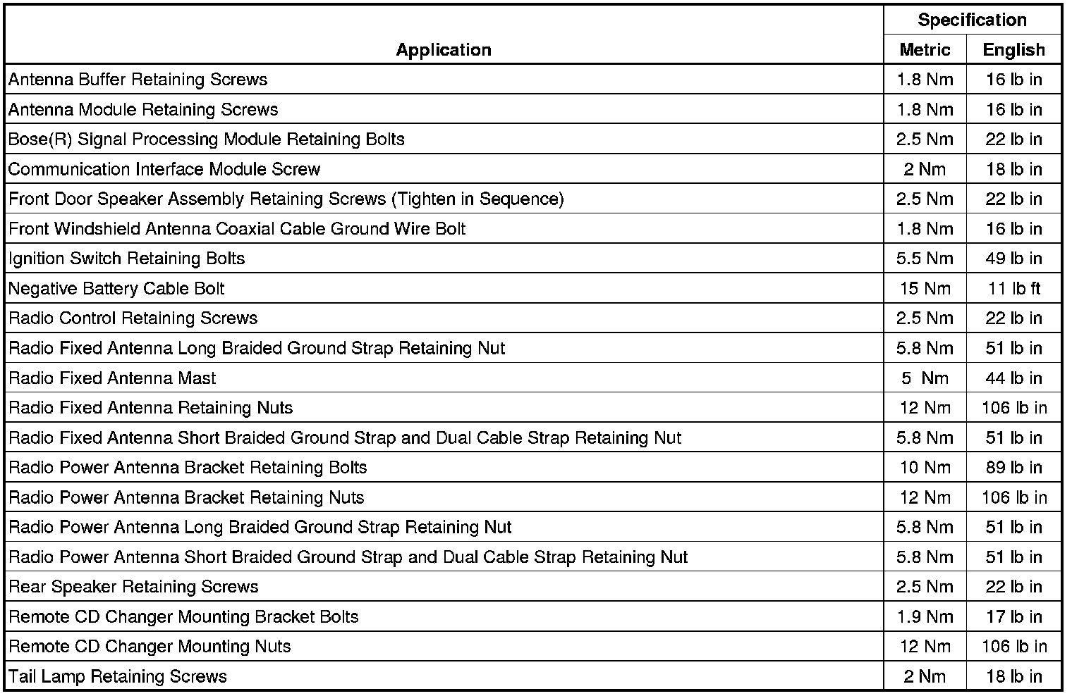 Fastener Tightening Specifications