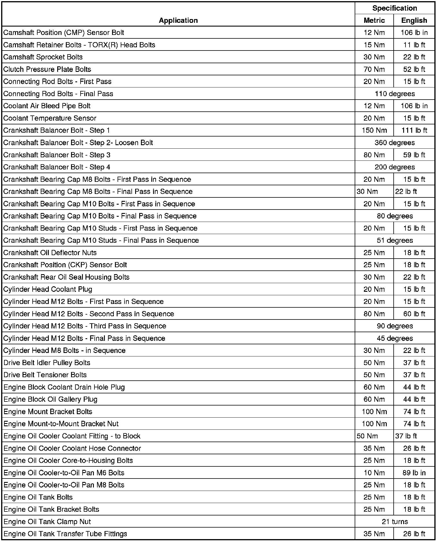 Fastener Tightening Specifications