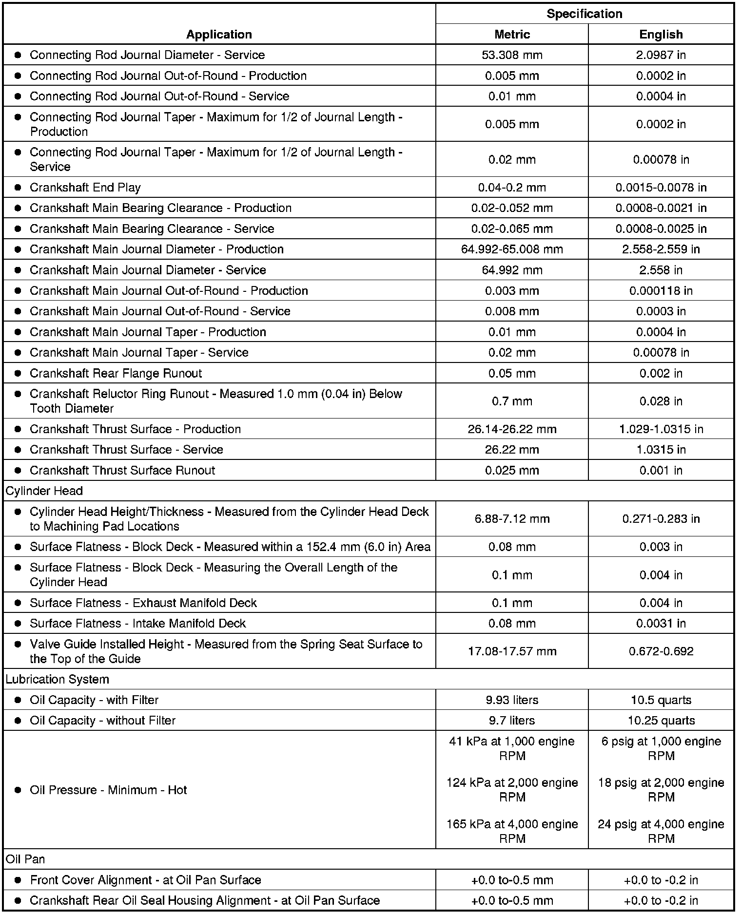 Engine Mechanical Specifications (6.2L LS9)
