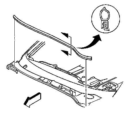 5. Remove the hood air inlet screen seal. Refer to Air Inlet Grille Panel Replacement (Service and Repair).