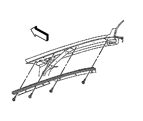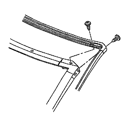 11. Remove the windshield side reveal moldings. Refer to Windshield Side Reveal Molding Replacement (Coupe and Convertible) (Windshield Side Reveal Molding Replacement (Coupe and Convertible))Windshield Side Reveal Molding Replacement (Hardtop) (Windshield Side Reveal Molding Replacement (Hardtop)).