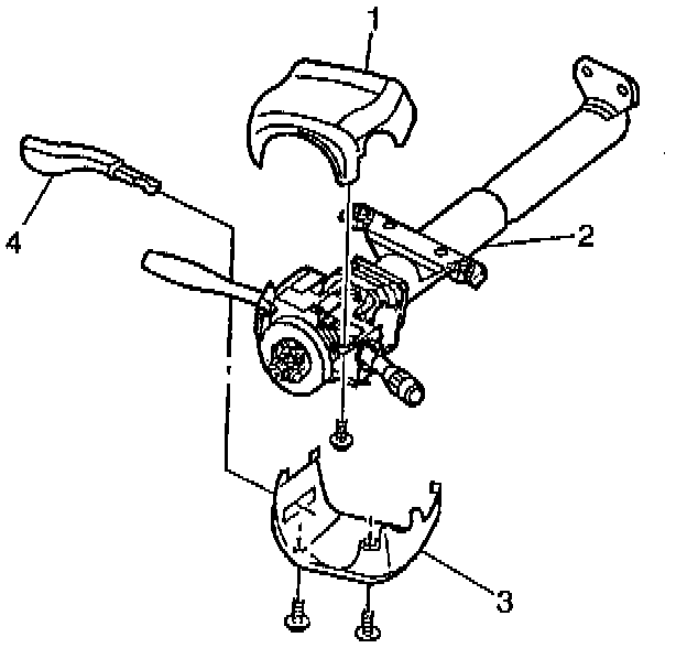3. Separate and remove the upper (1) and the lower (3) steering column covers.