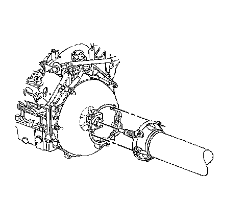 21.Vehicles equipped with a manual transmission, slide the engine and crossmember rearward. Do not force the engine onto the propeller spline.
