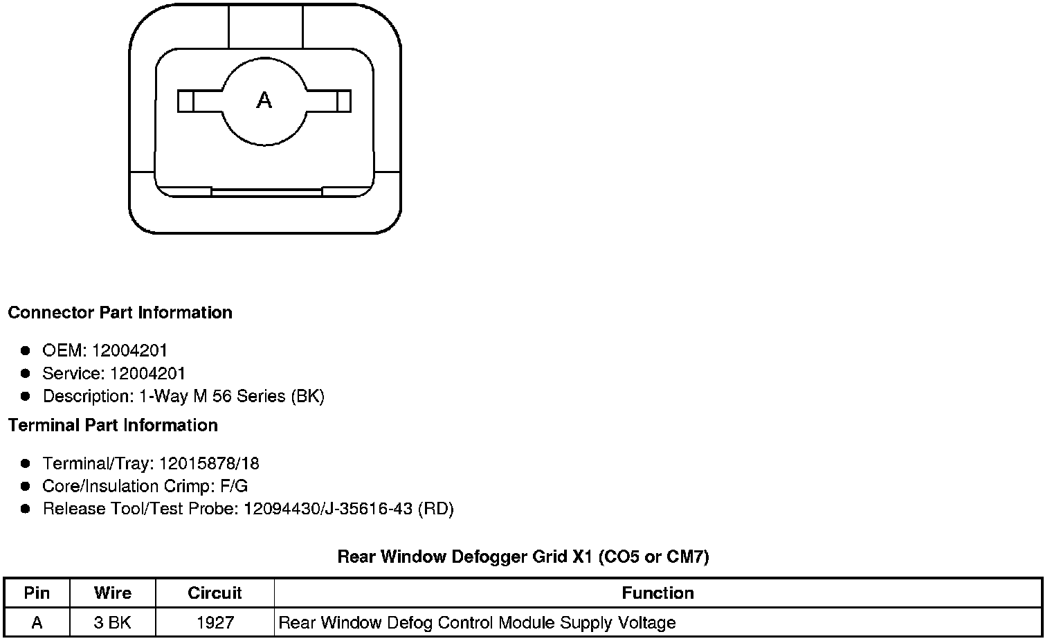 Rear Window Defogger Grid X1 (CO5 or CM7)