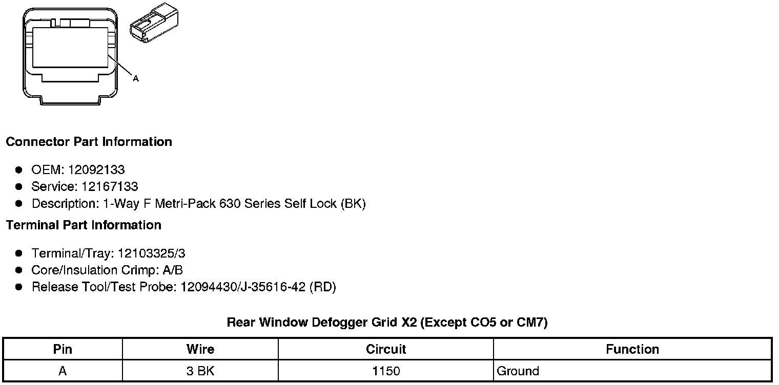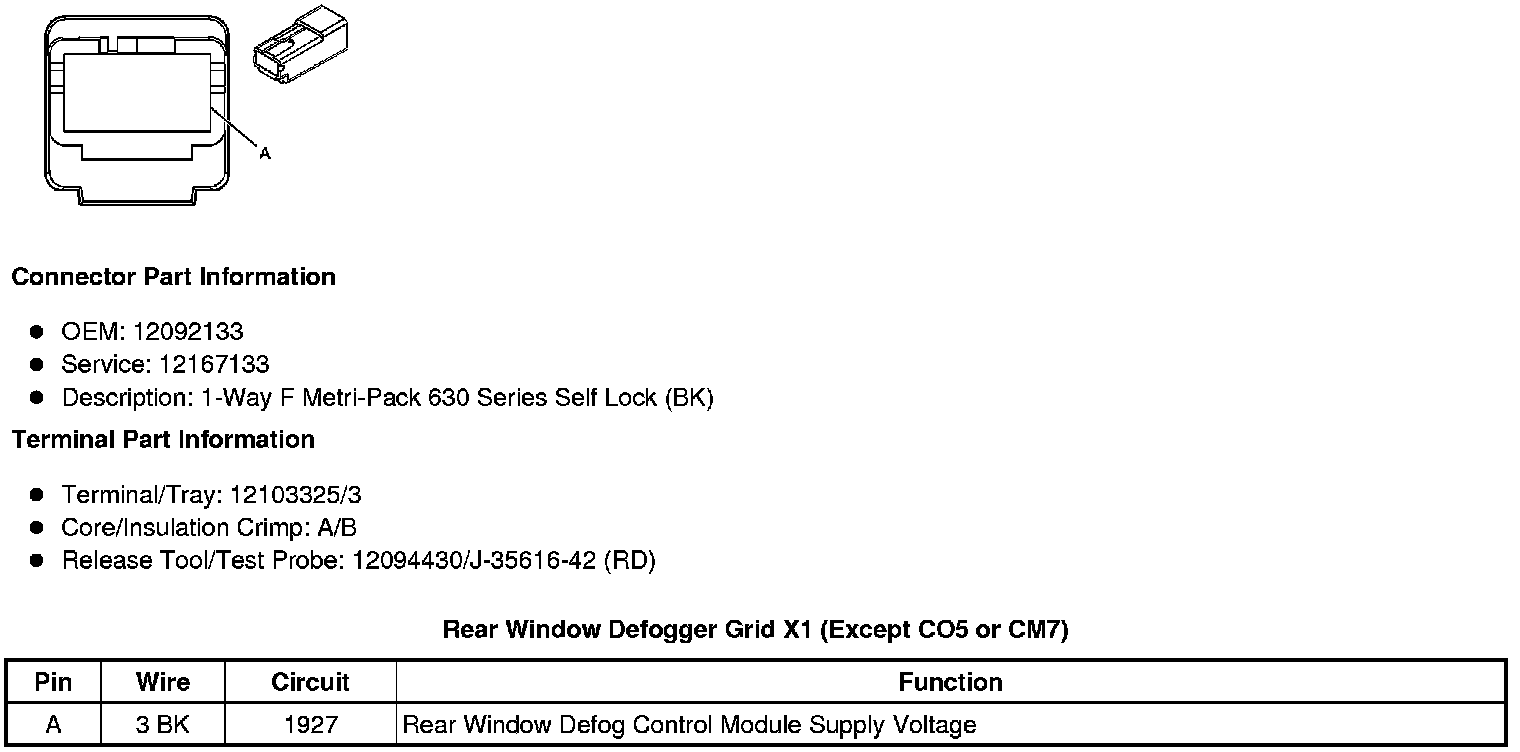 Rear Window Defogger Grid X1 (Except CO5 or CM7)