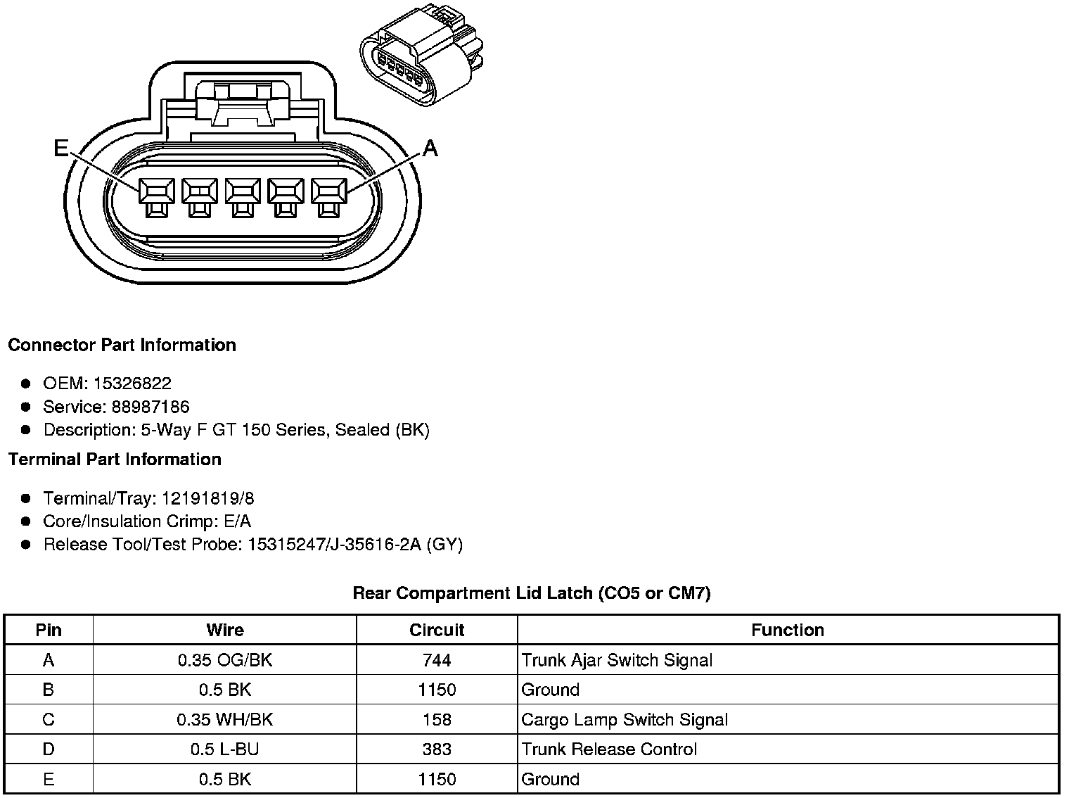 Rear Compartment Lid Latch (CO5 or CM7)