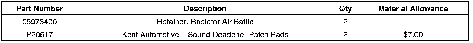 Remove the air cleaner assembly for access. Clean the bumper beam as necessary and install the patch so the holes (1) are covered. No air can flow through these holes.