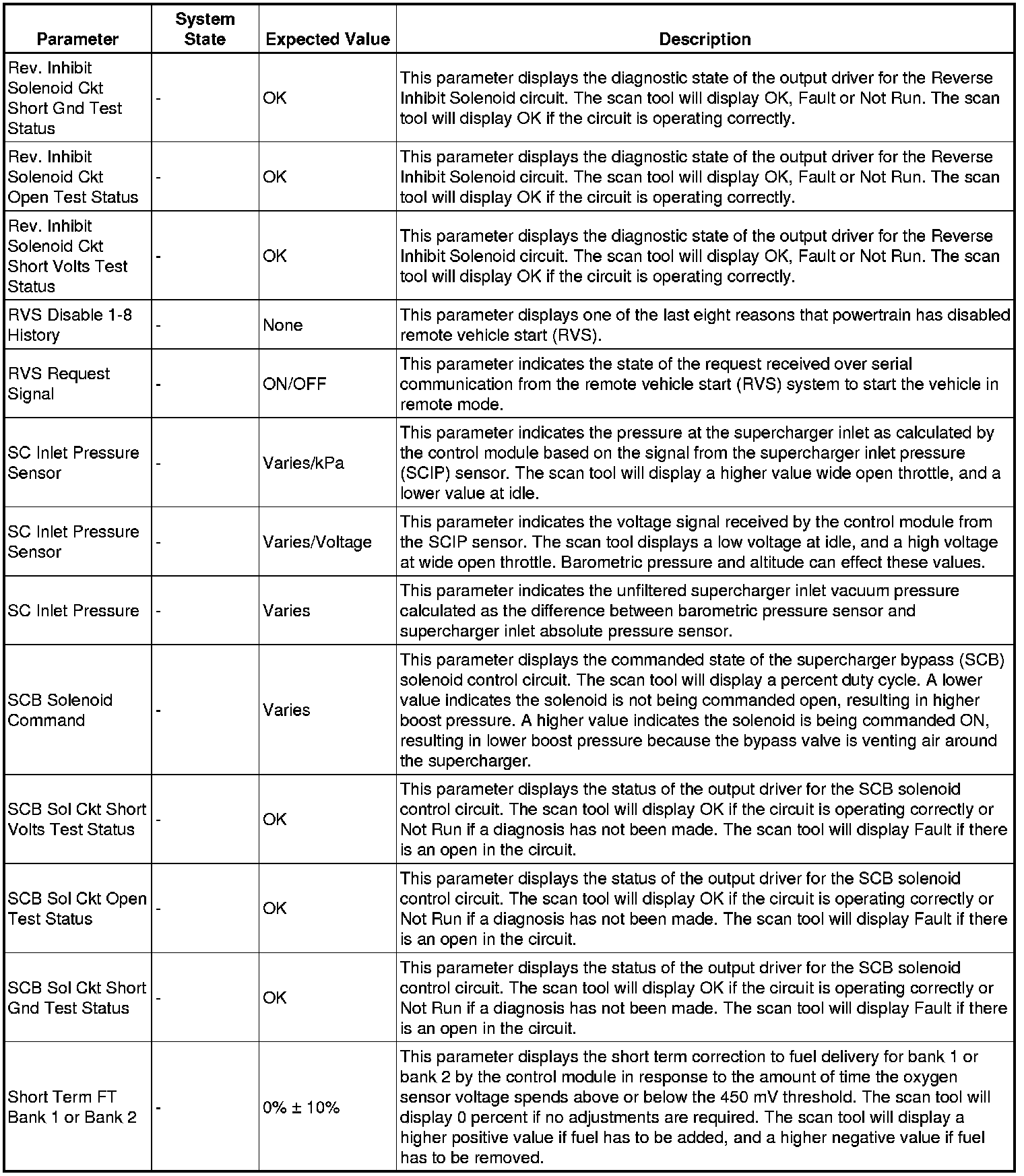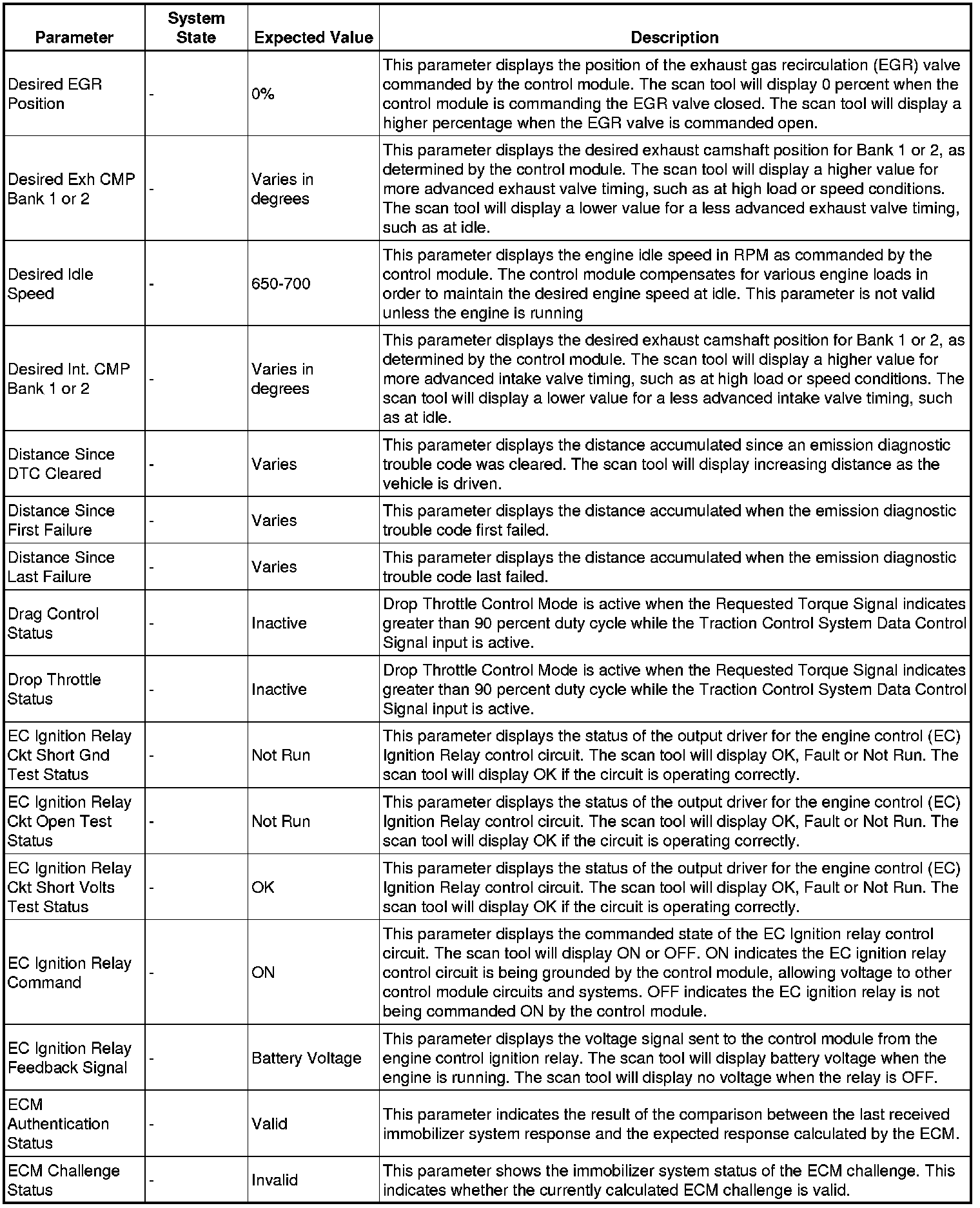 The Engine Control Module Scan Tool Data List contains all engine-related parameters that are available on the scan tool. The list is arranged in alphabetical order. A given parameter may appear in any one of the data lists, and in some cases may appear more than once, or in more than one data list in order to group certain related parameters together.