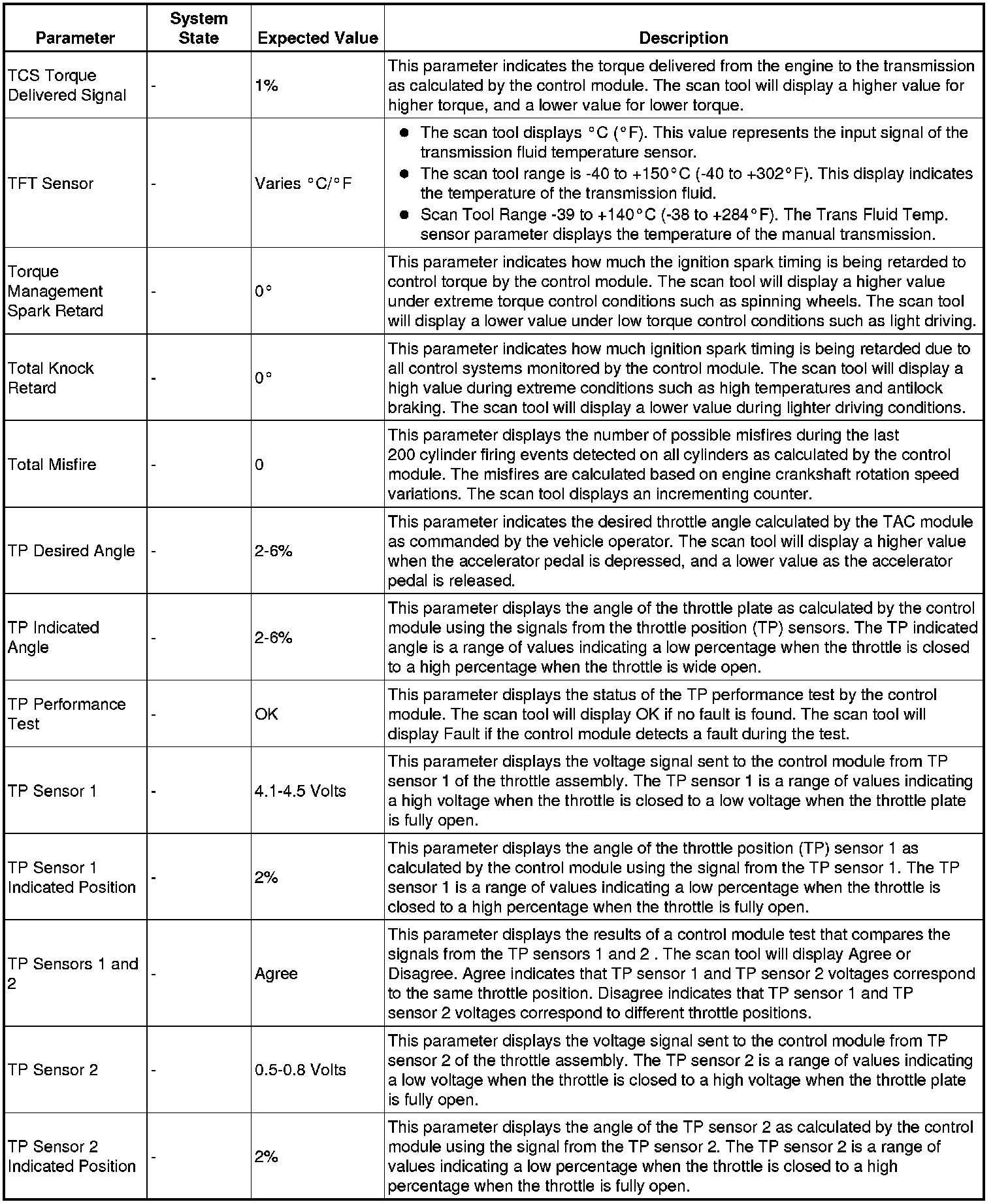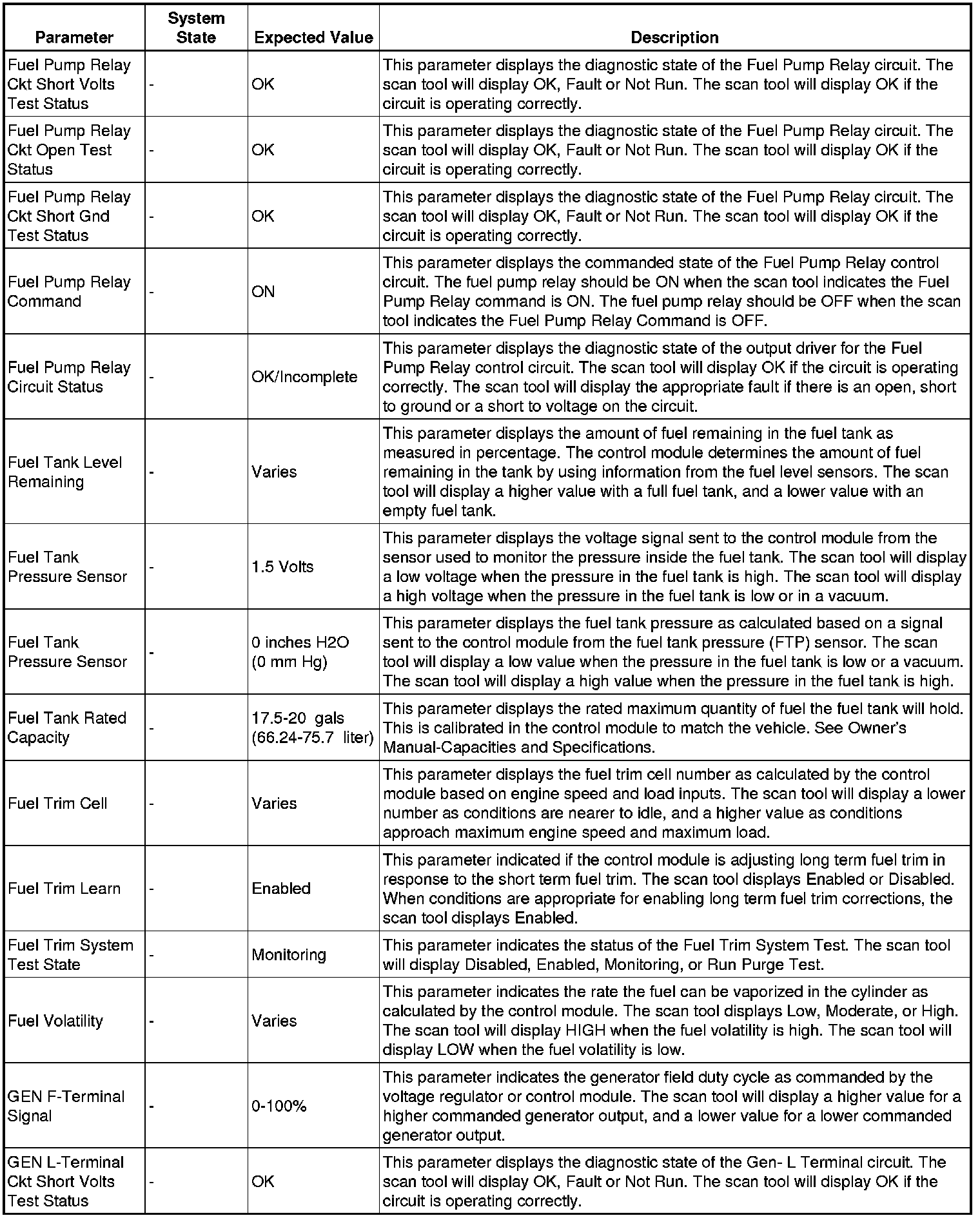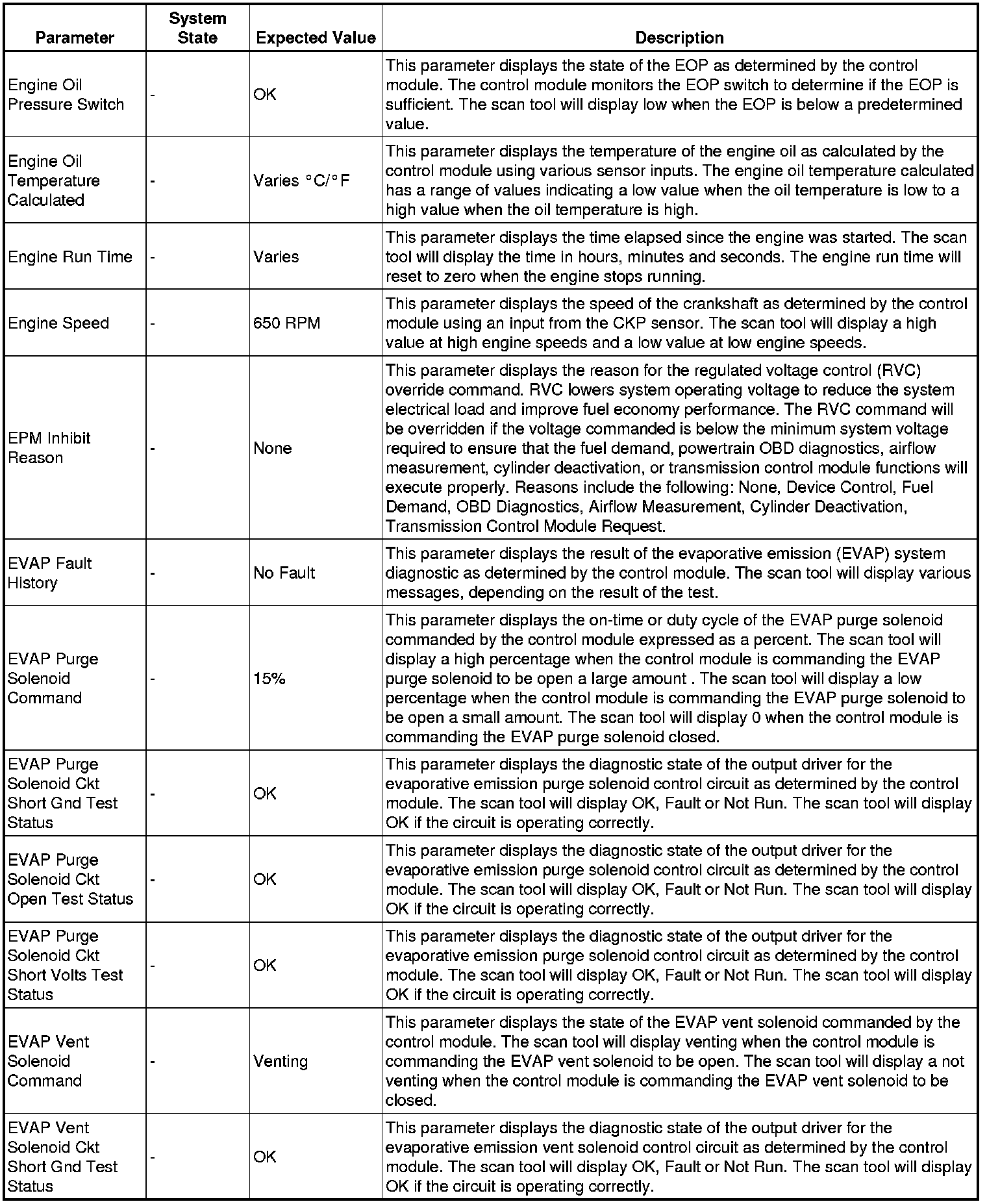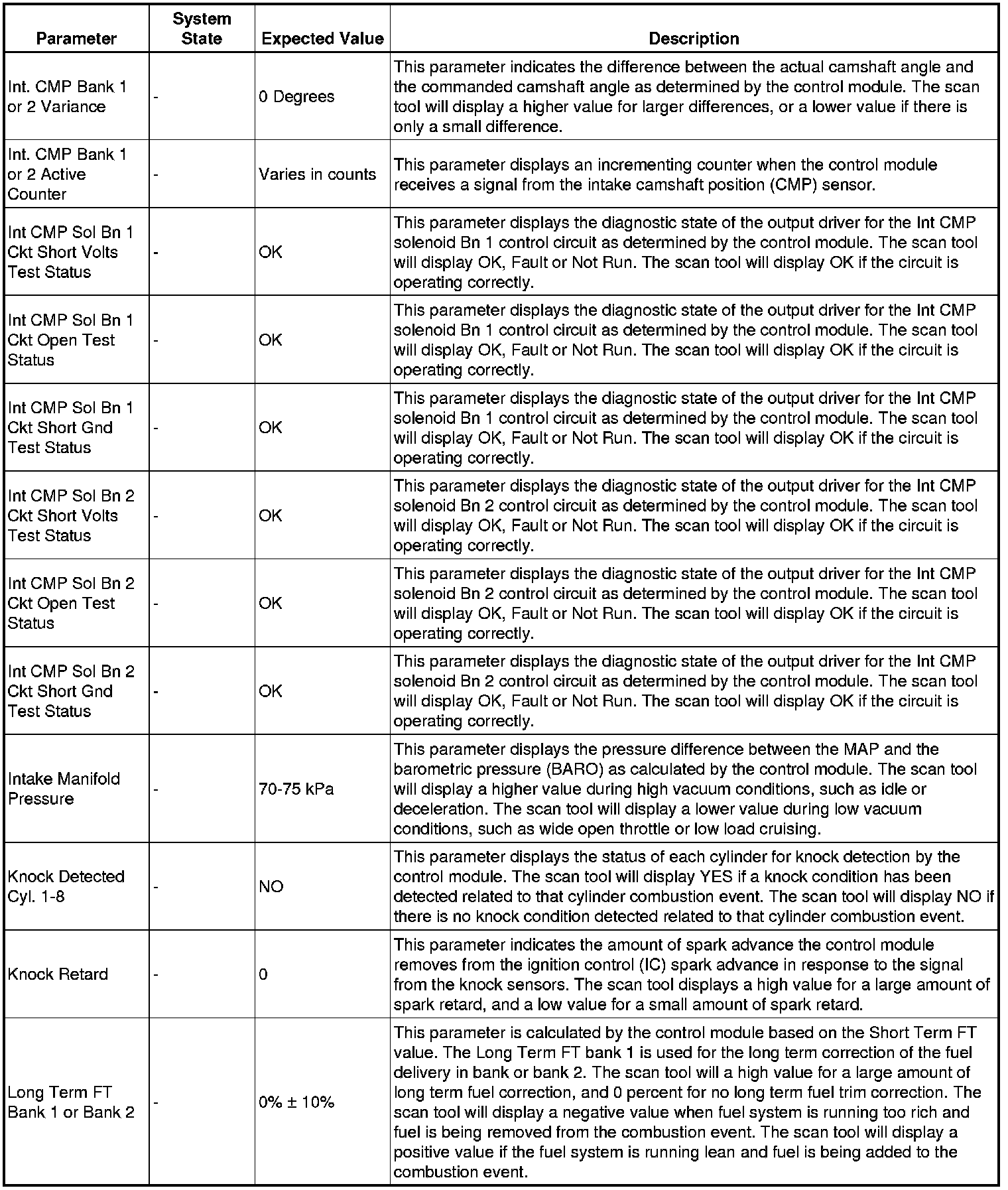 The scan tool values from a properly running engine may be used for comparison with the engine you are diagnosing. The engine scan tool data list represents values that would be seen on a normally running engine.
