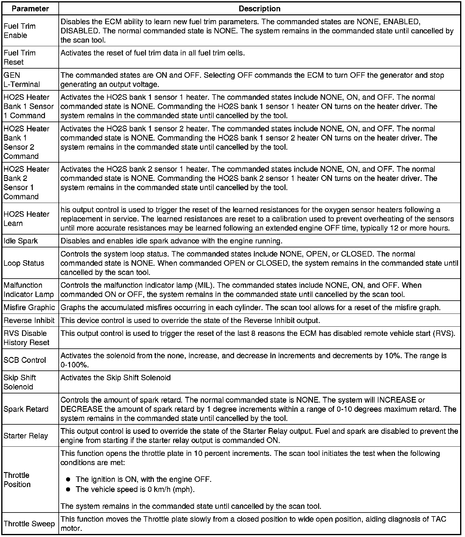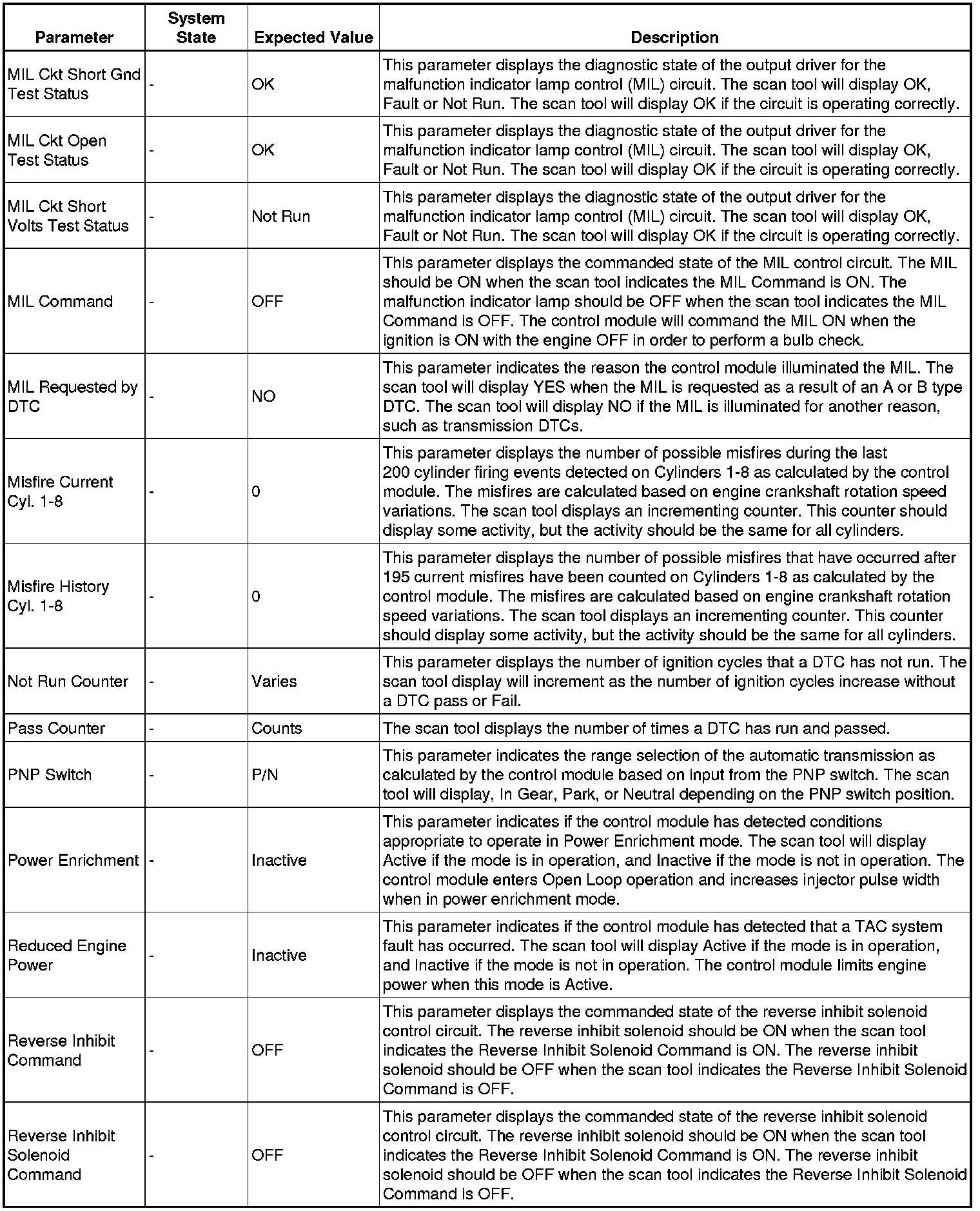 Only the parameters listed below are referenced in this service manual for use in diagnosis.
