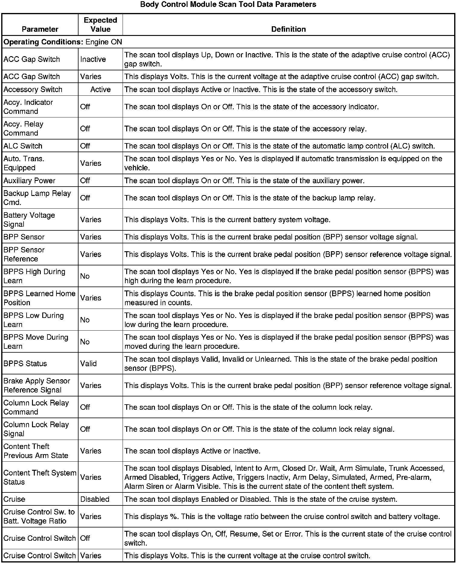 Body Control Systems: Testing and Inspection