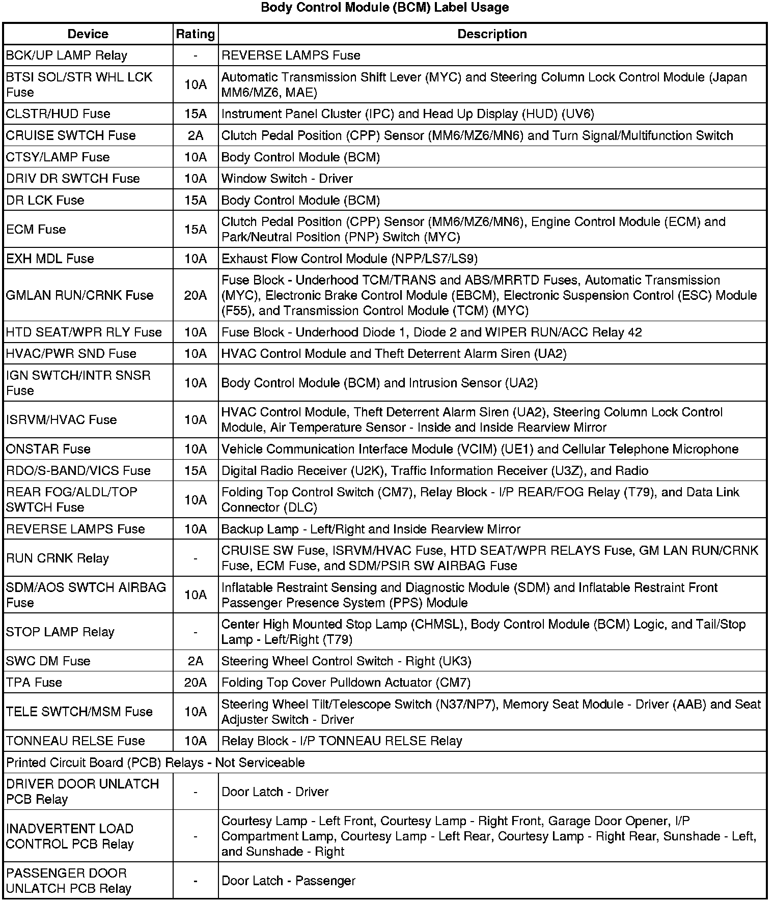 Body Control Module (BCM) Label