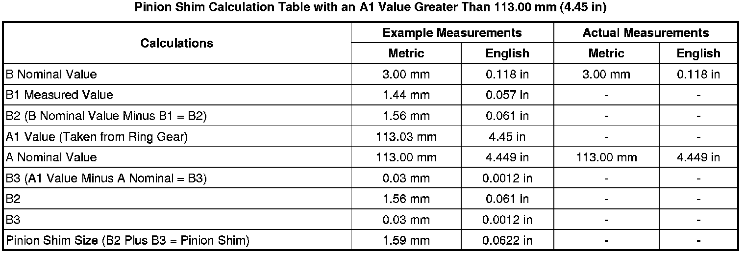 Spacer and Shim Specifications (Z06)