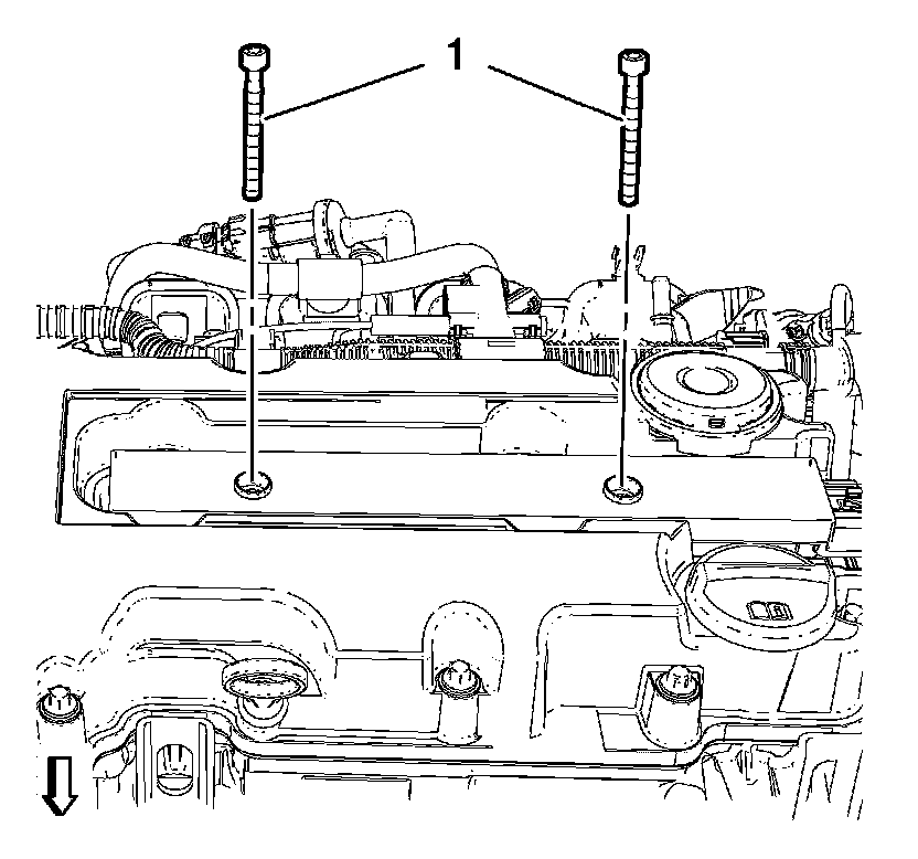 3. Install the 2 ignition coil bolts (1) and tighten to 8 Nm (71 lb in).