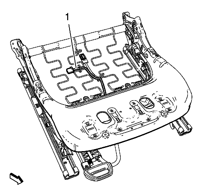 1. Remove front seat cushion cover (1) and pad (2) from frame (3). Refer to Front Seat Cushion Cover and Pad Replacement (Front Seat Cushion Cover and Pad Replacement)