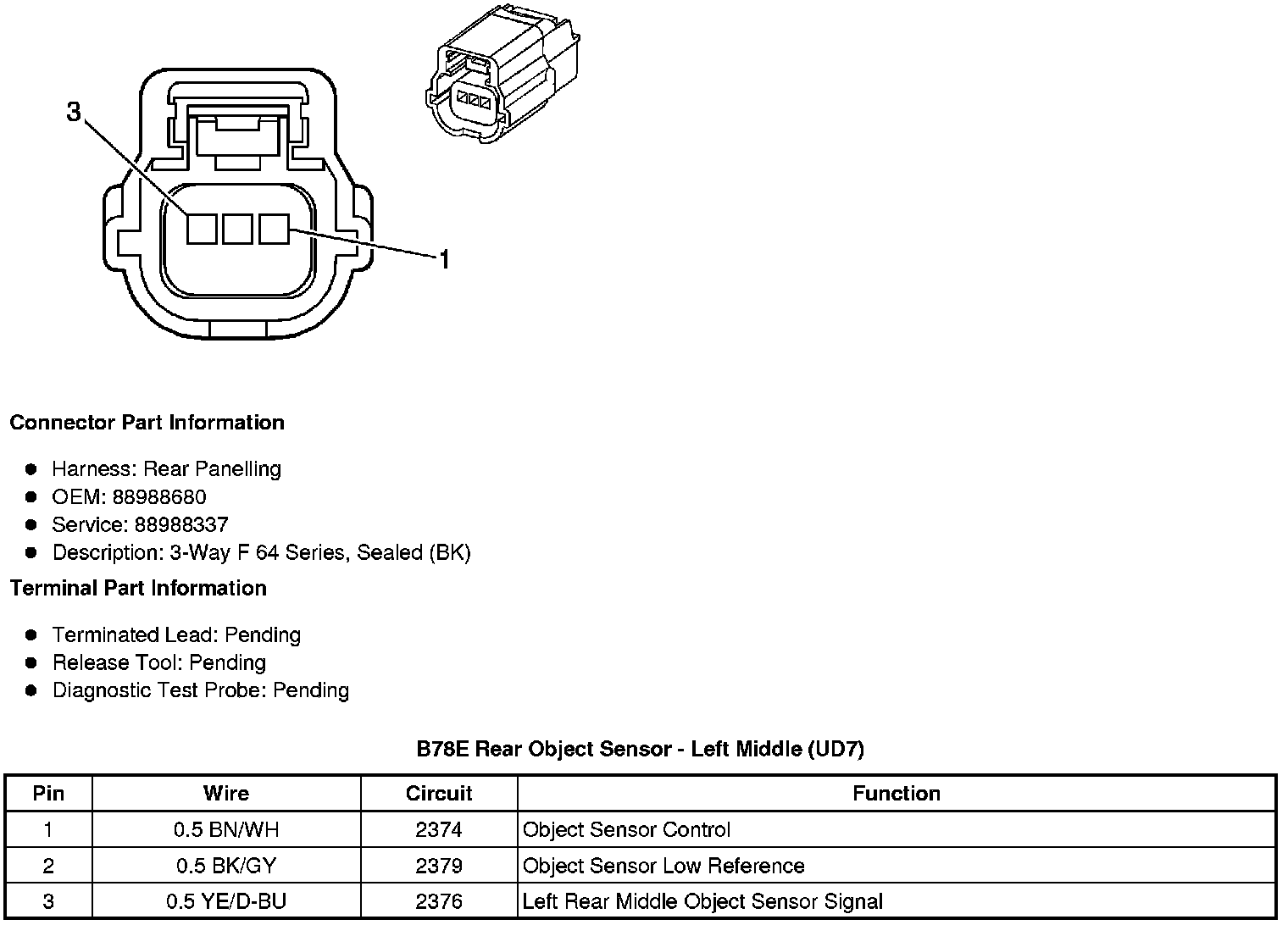 B78E Rear Object Sensor - Left Middle (UD7)