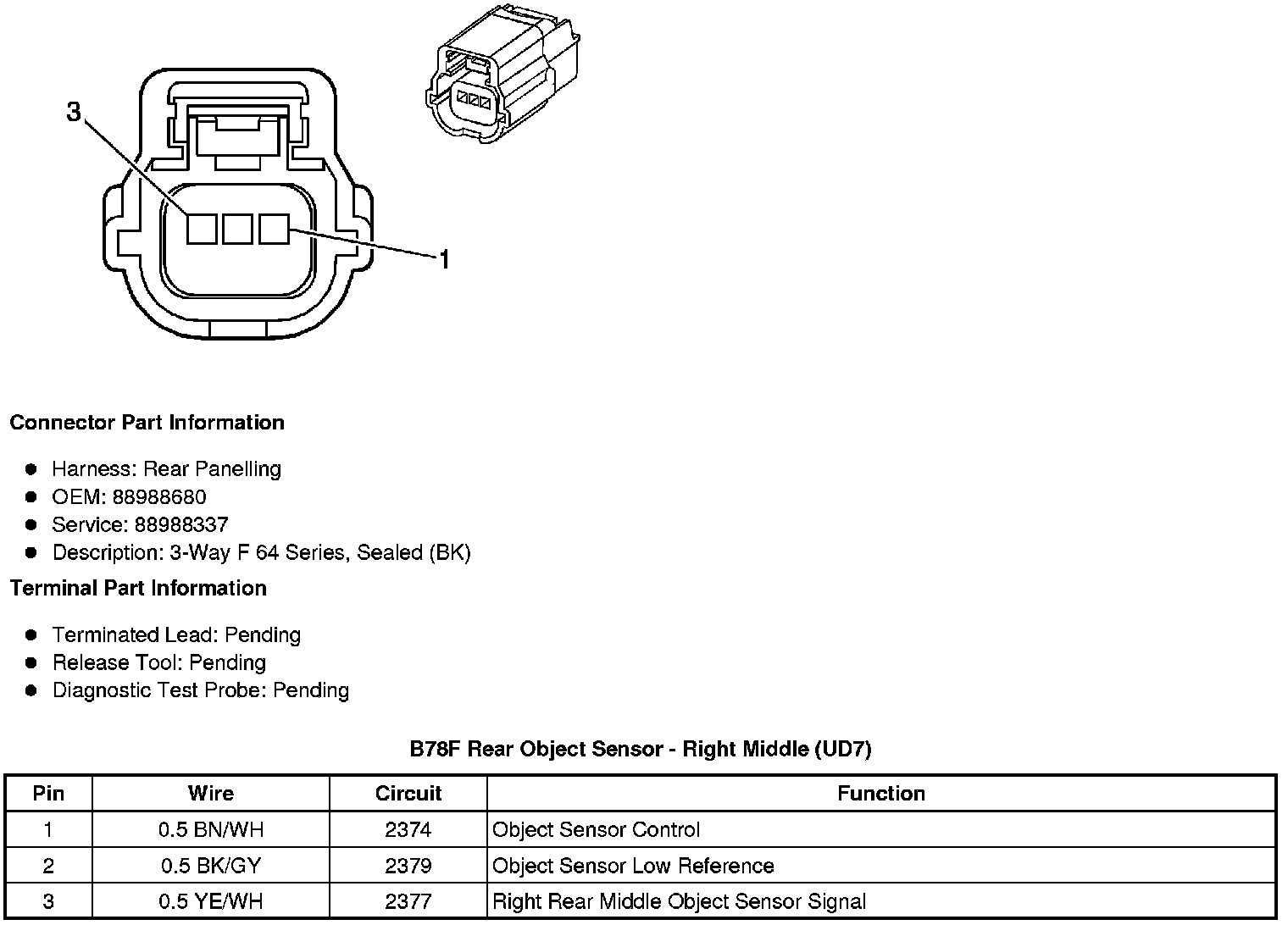 B78F Rear Object Sensor - Right Middle (UD7)