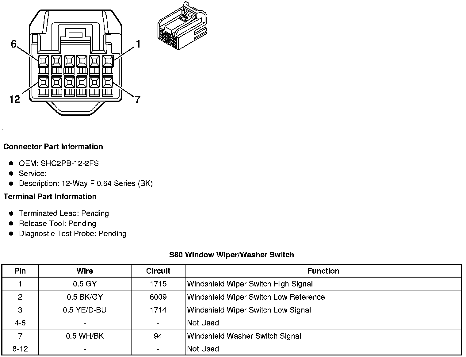 S80 Window Wiper/Washer Switch
