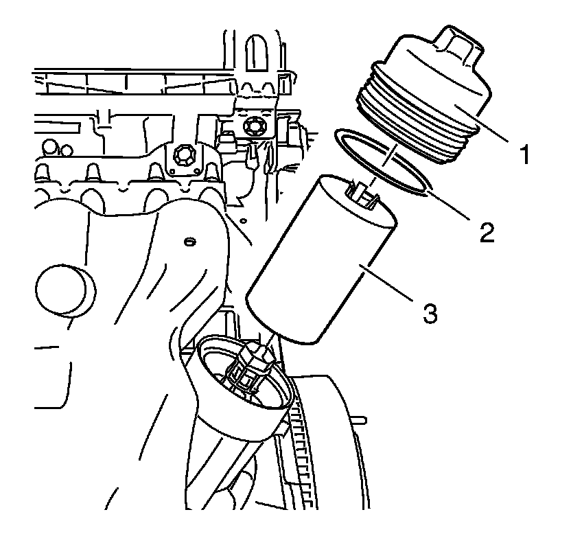 Caution: Over torquing the oil filter cap may cause damage to the oil filter cap resulting in an oil leak.