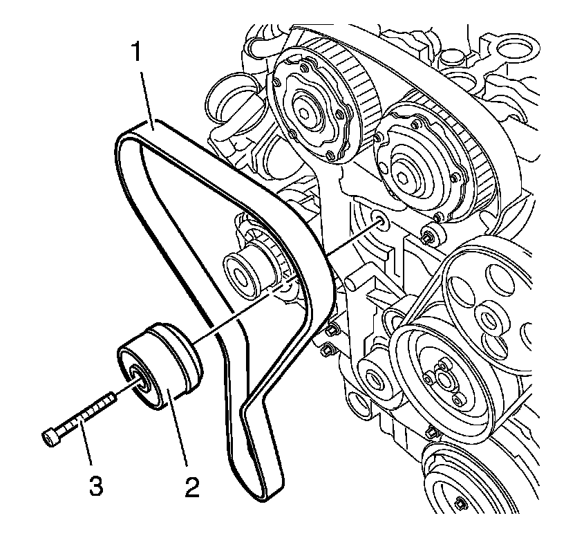 6. Remove the drive belt tensioner. Refer to Drive Belt Tensioner Replacement (Service and Repair).