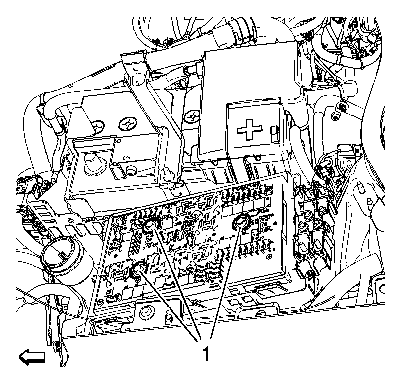 3. Install 3 front compartment fuse block bolt (1) and tighten to 6 Nm (53 lb in).