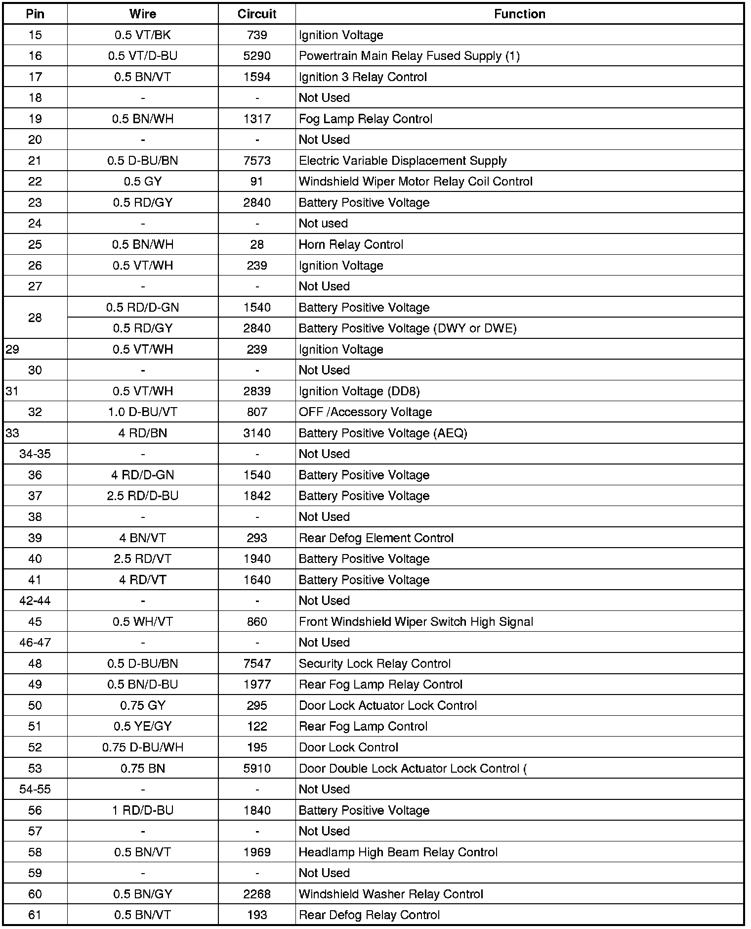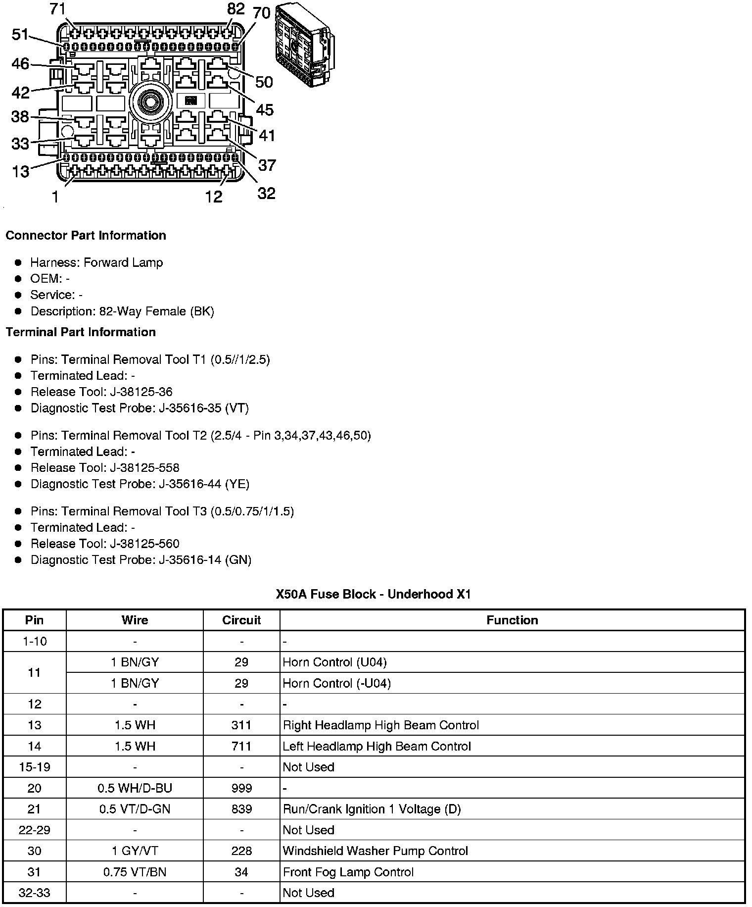 X50A Fuse Block - Underhood Bottom View