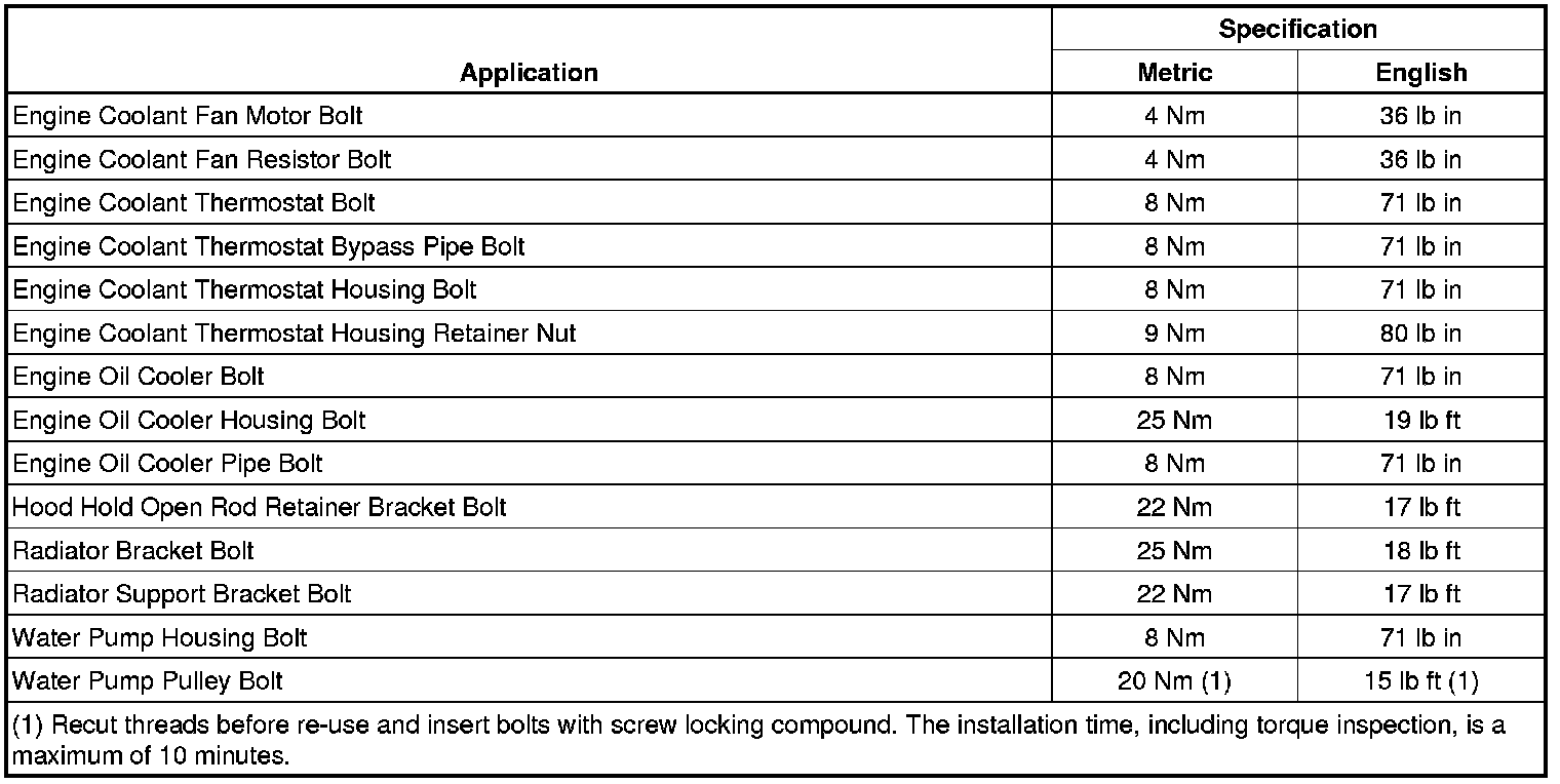 Fastener Tightening Specifications (1.6L LDE, LLU, LXV, 1.8L 2H0, and LUW)