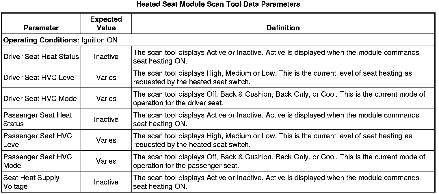 Driver Seat and Passenger Seat Heater Control Module Scan Tool Information