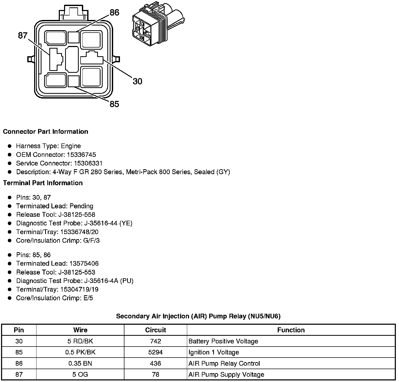 Secondary Air Injection (AIR) Pump Relay (NU5/NU6)