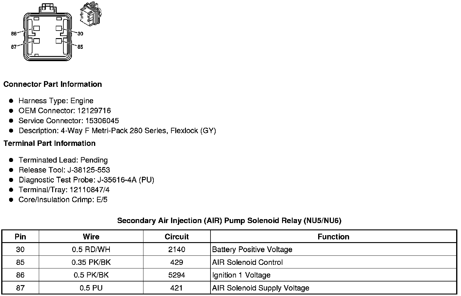 Secondary Air Injection (AIR) Pump Solenoid Relay (NU5/NU6)