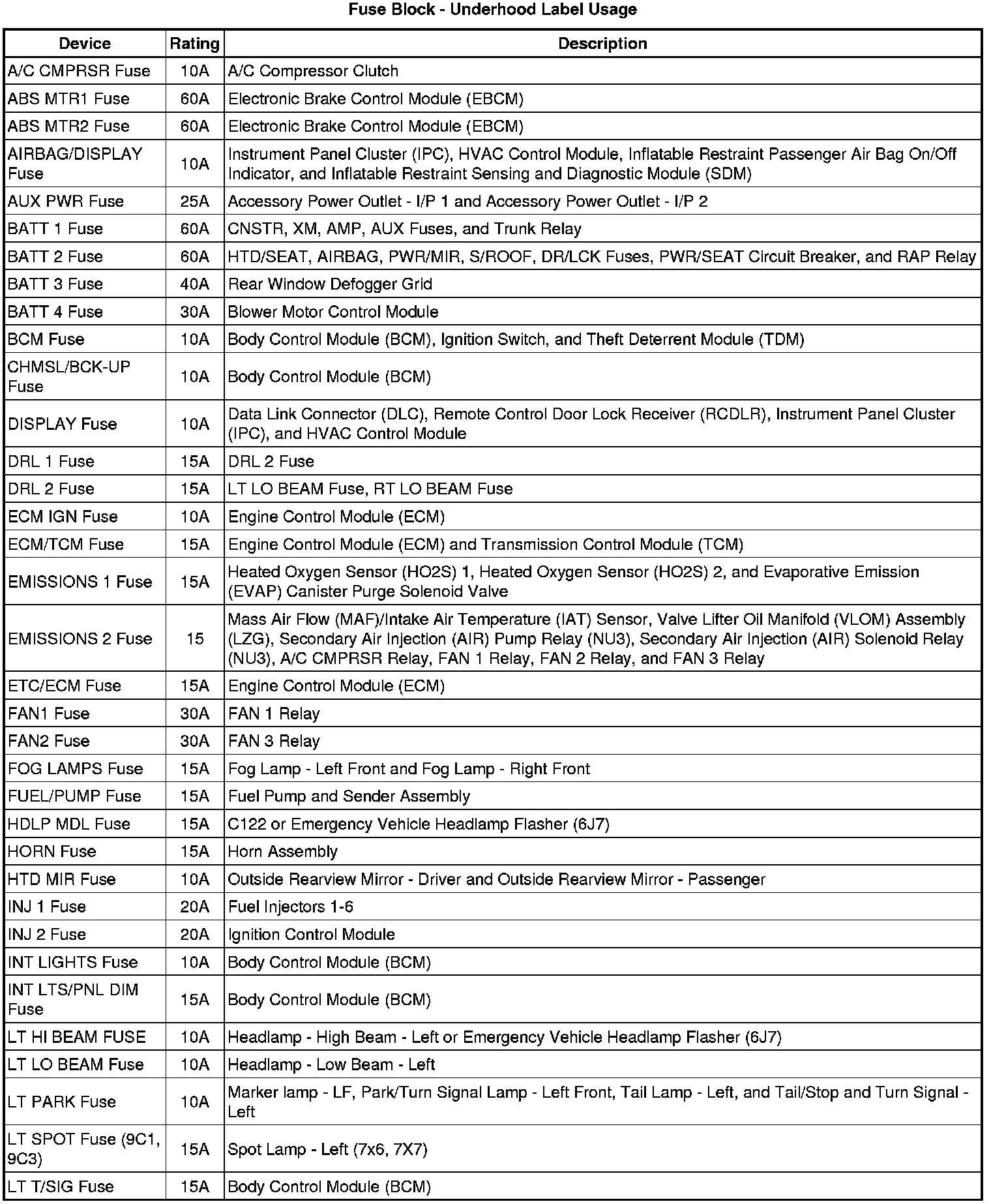 Fuse Block - Underhood Label