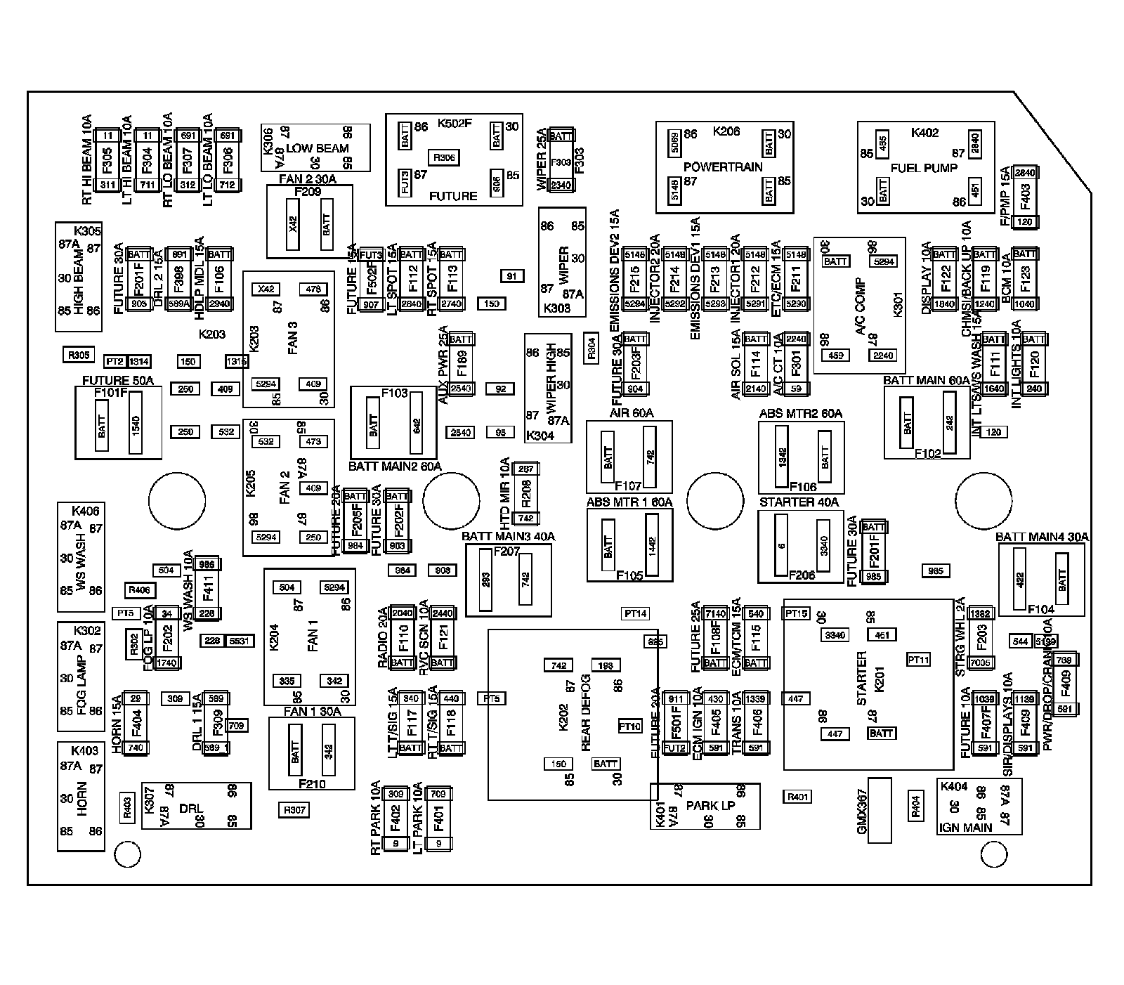 Fuse Block - Underhood - Top View