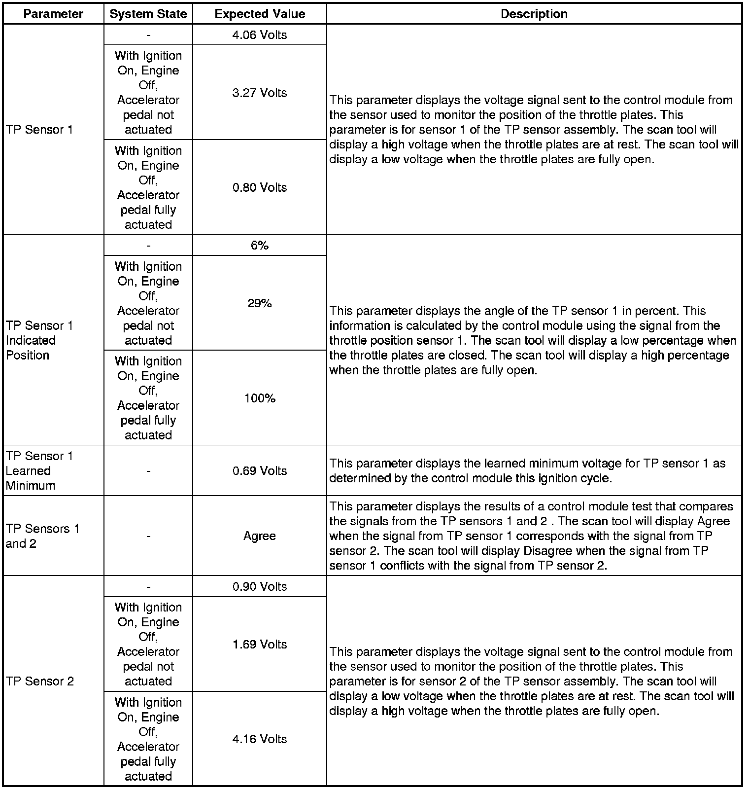 Only the parameters listed below are referenced in this service manual for use in diagnosis. If all values are within the typical range described below, refer to Symptoms - Engine Controls (Symptoms - Engine Controls) for diagnosis.