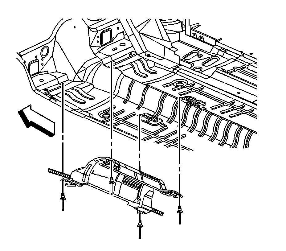 1. Position the catalytic converter heat shield to the underbody.