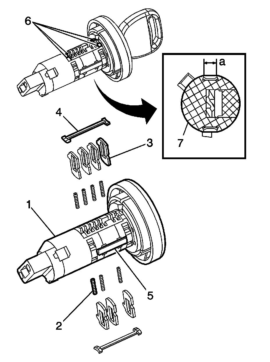 Note: The ignition lock cylinder tumblers (3) are not self-retaining and must be held in place if the key in not fully inserted into the lock cylinder or until the tumbler retainers (4) are properly staked into the cylinder.