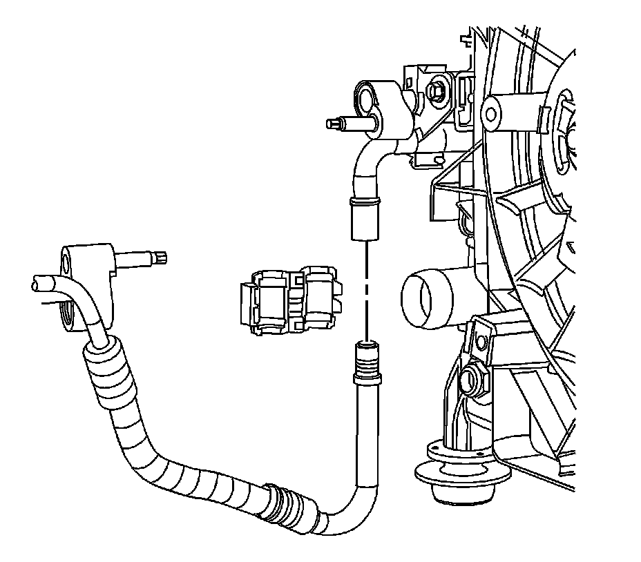 7. Install the A/C line coupling to the evaporator tube and condenser tube. Refer to Air Conditioning Line/Tube Connector Removal/Replacement (Air Conditioning Line/Tube Connector Removal/Replacement).