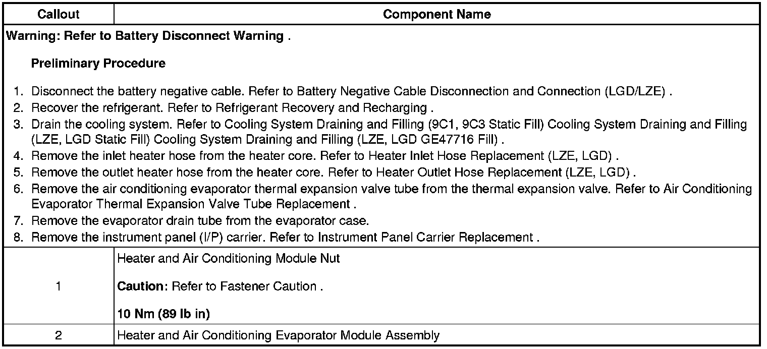 Air Conditioning and Heater Module Assembly Removal and Installation