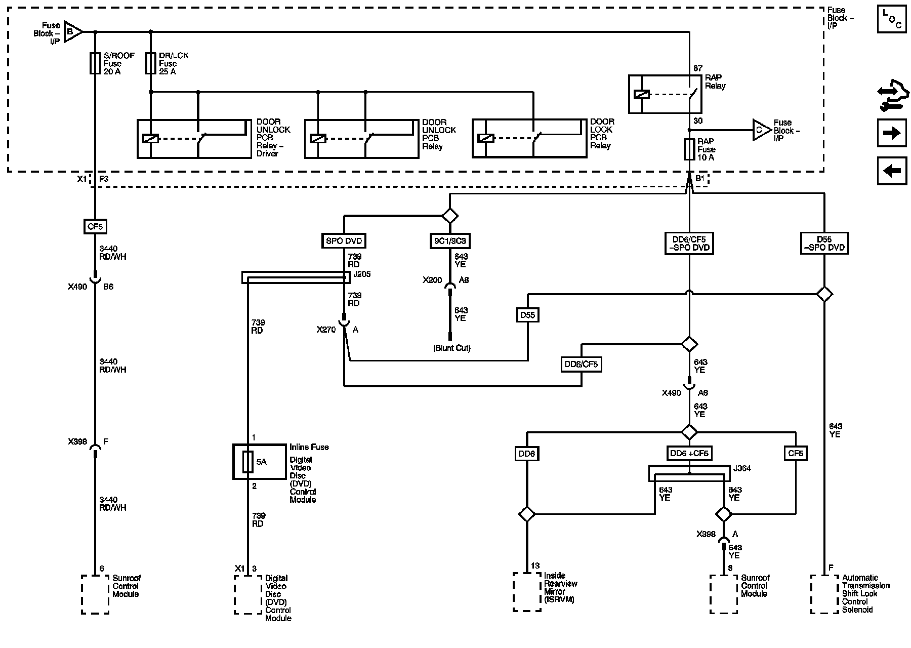 S/ROOF, DR/LCK, RAP Fuses, and RAP Relay, DOOR UNLOCK PCB Relay - Driver, DOOR UNLOCK PCB Relay, and DOOR LOCK PCB Relay