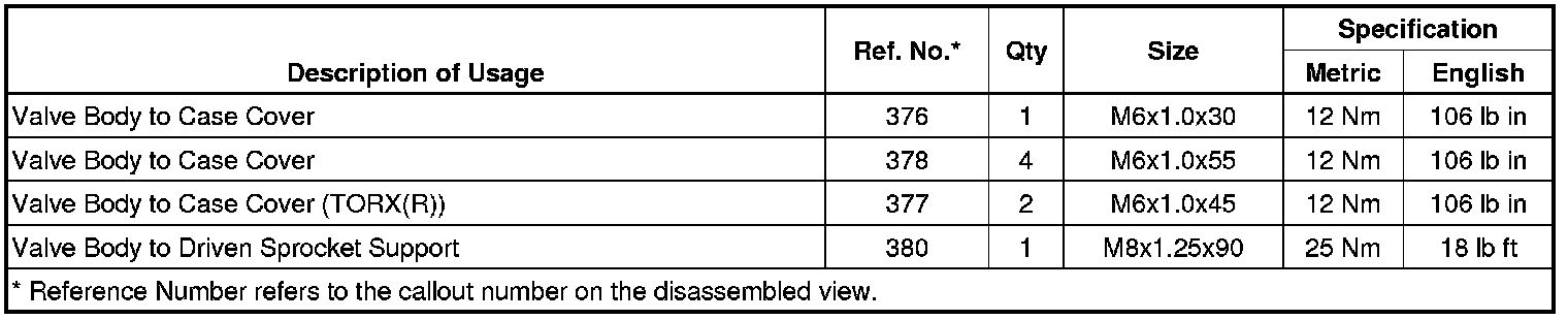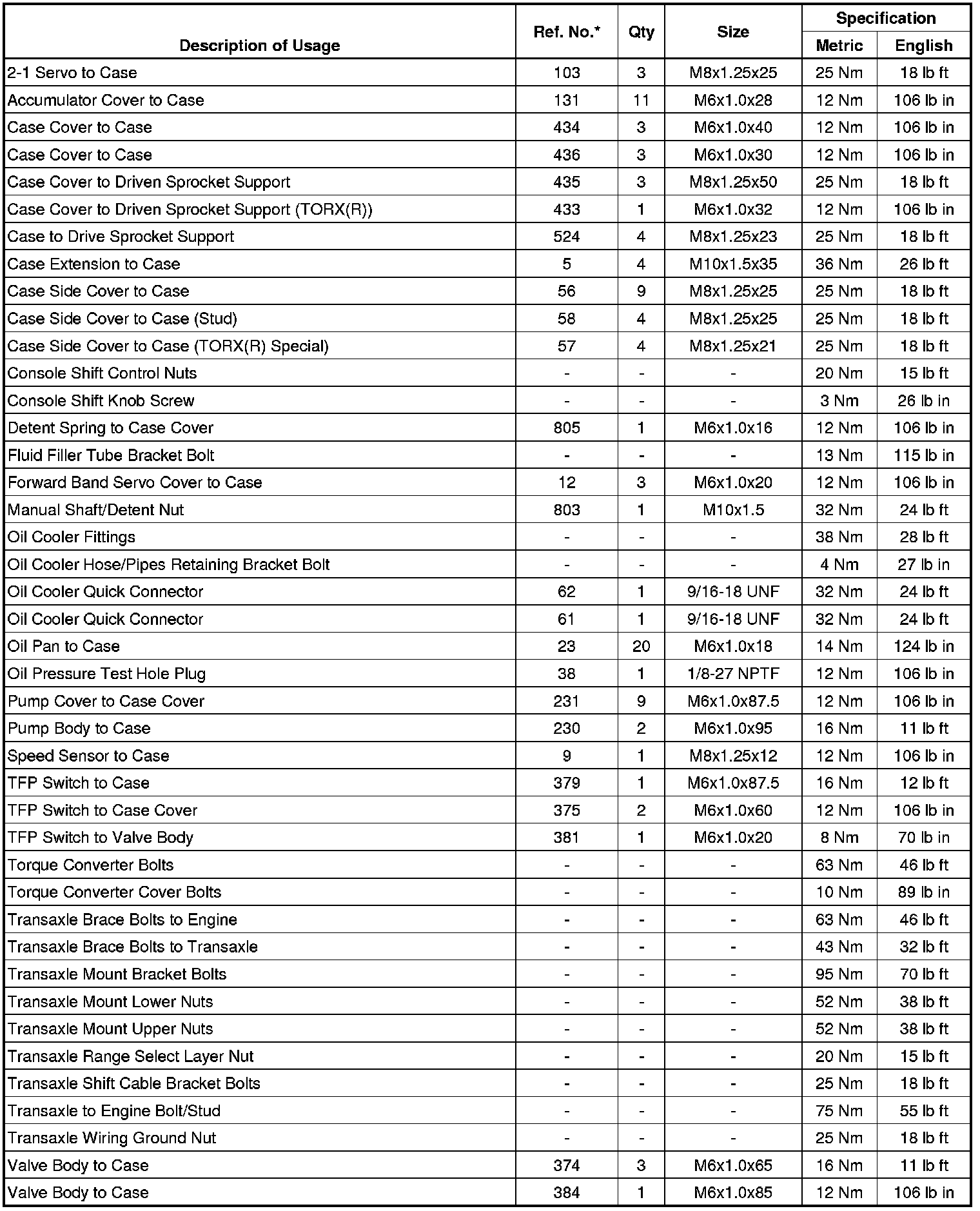 Fastener Tightening Specifications