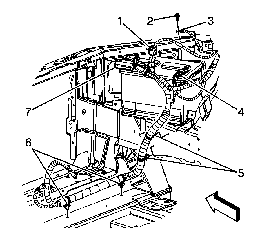 1. Disconnect the instrument panel (I/P) harness electrical connector (1) from the battery current sensor.